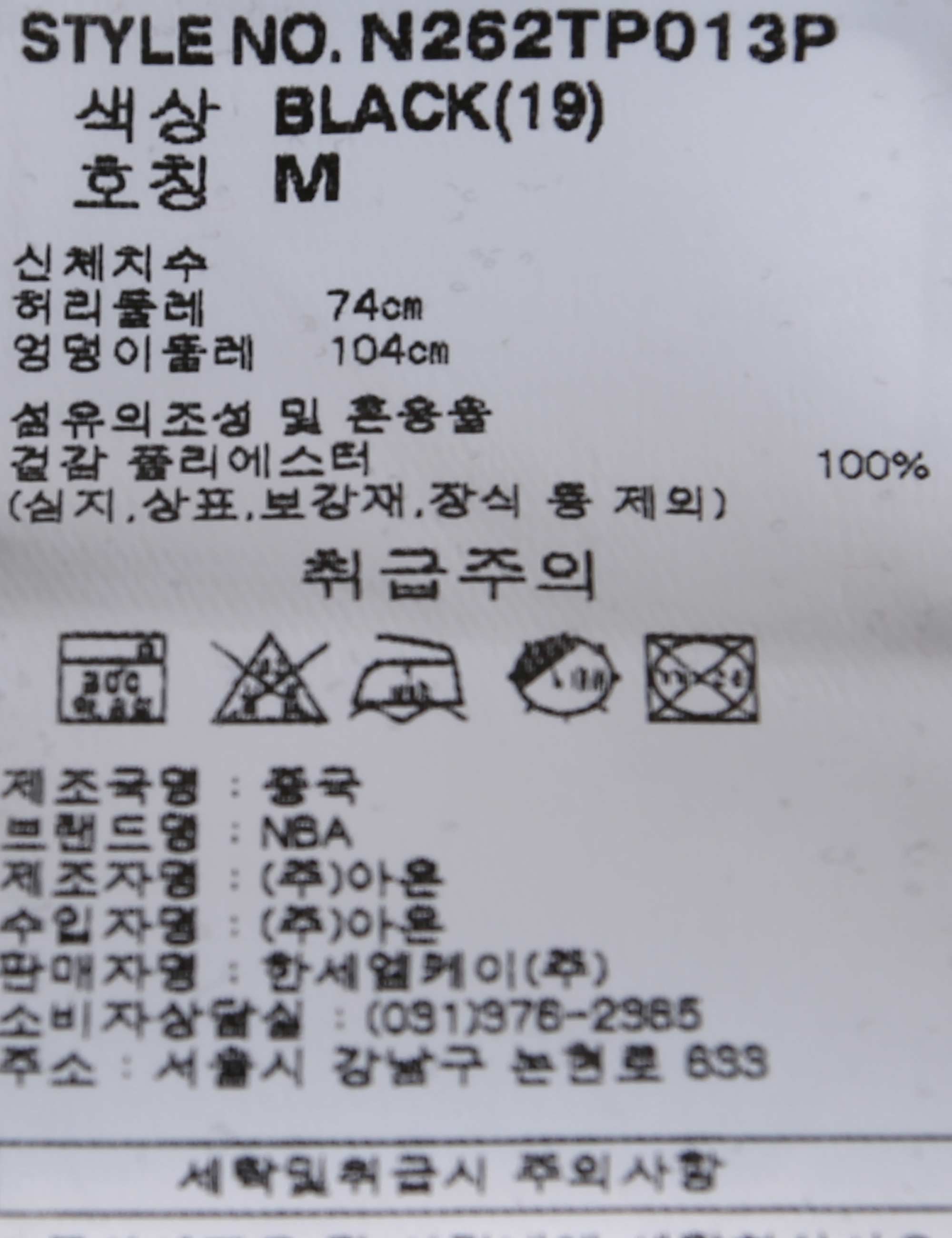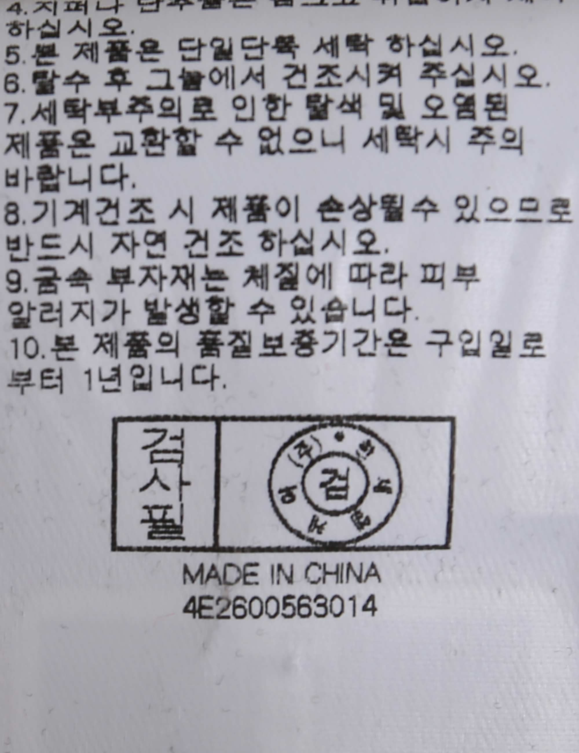| 세탁방법 및 취급시 주의사항 | 중성세제로 단 시간내에 세탁하십시오.(케어라벨참고) |