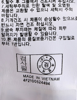 세탁방법 및 취급시 주의사항 중성세제로 단 시간내에 세탁하십시오.(케어라벨참고)