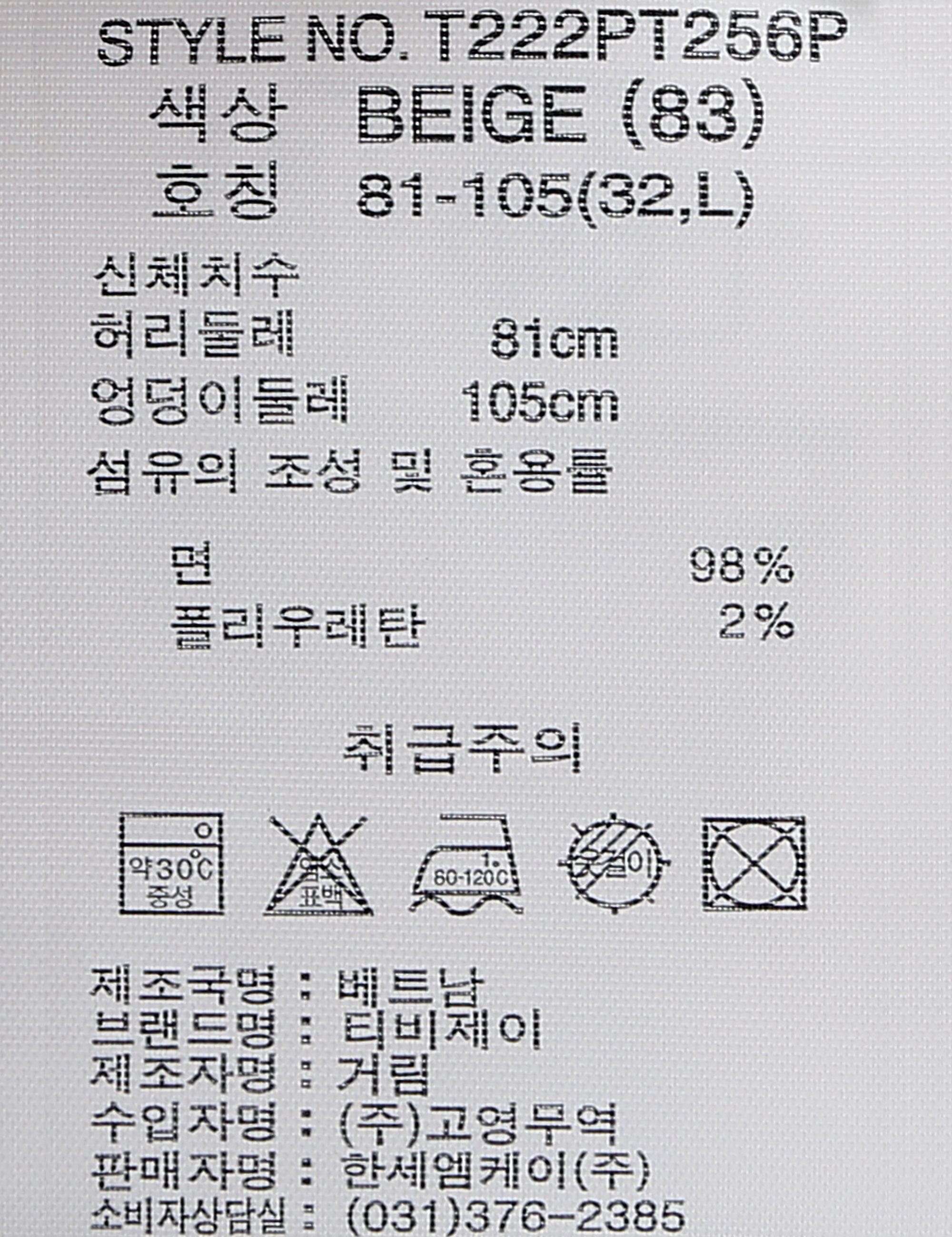 | 상품명 | 남성 슬랙스 테이퍼드핏 코튼린넨 (E-BAND)(T222PT256P) |