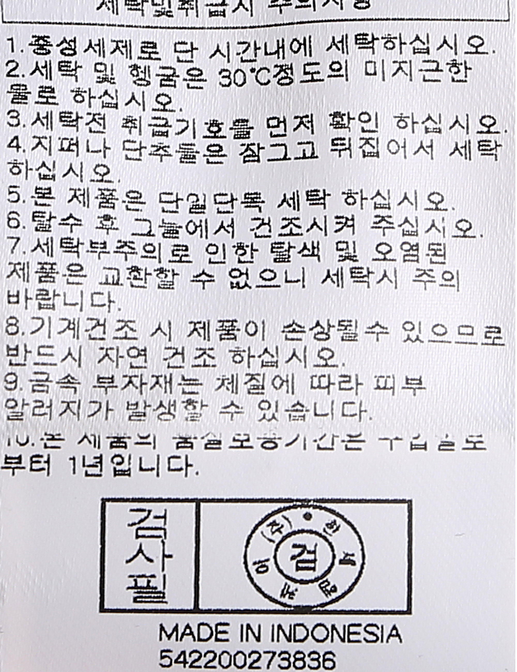 | 세탁방법 및 취급시 주의사항 | 중성세제로 단 시간내에 세탁하십시오.(케어라벨참고) |