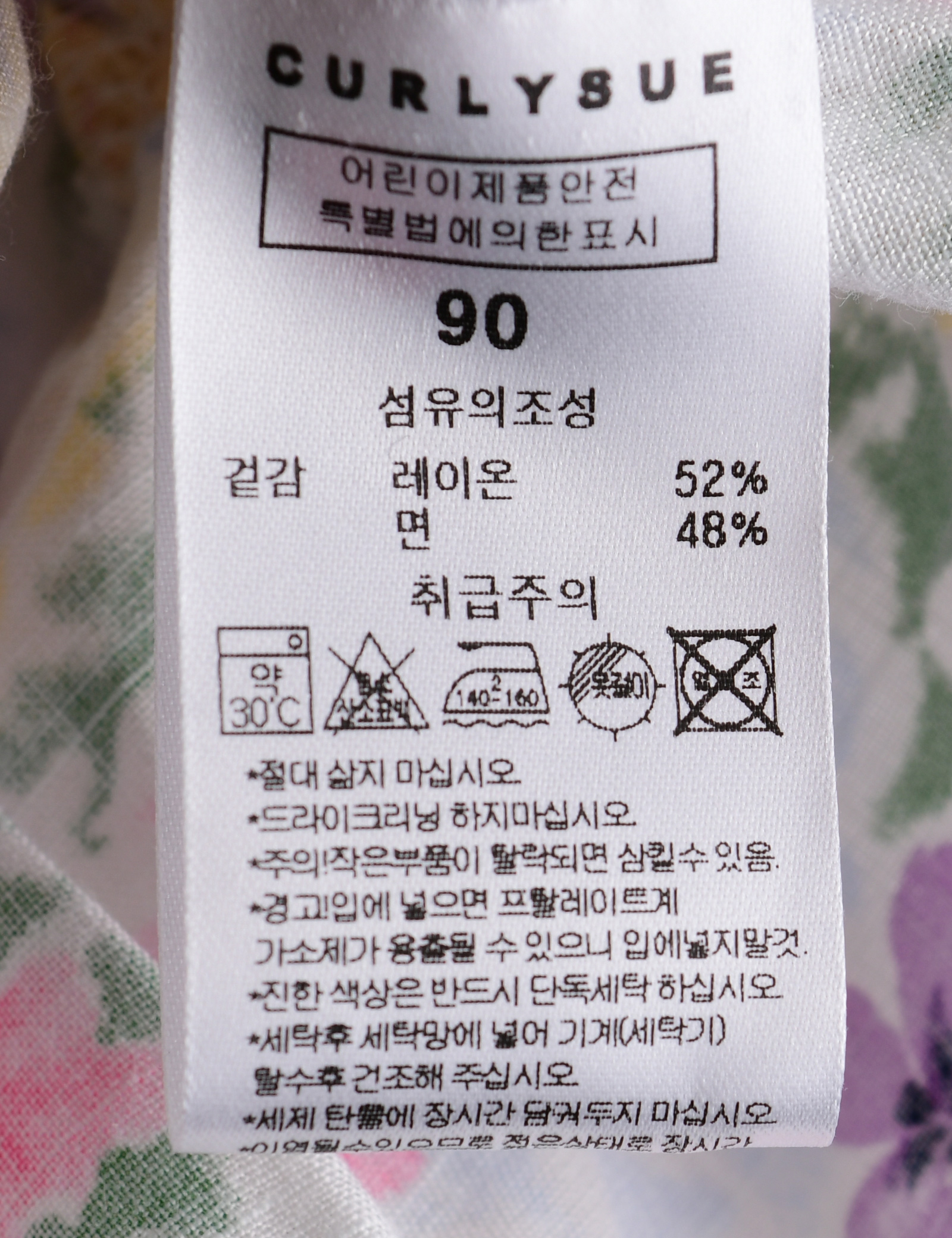 제품소재 (겉감)레이온52%,면48%