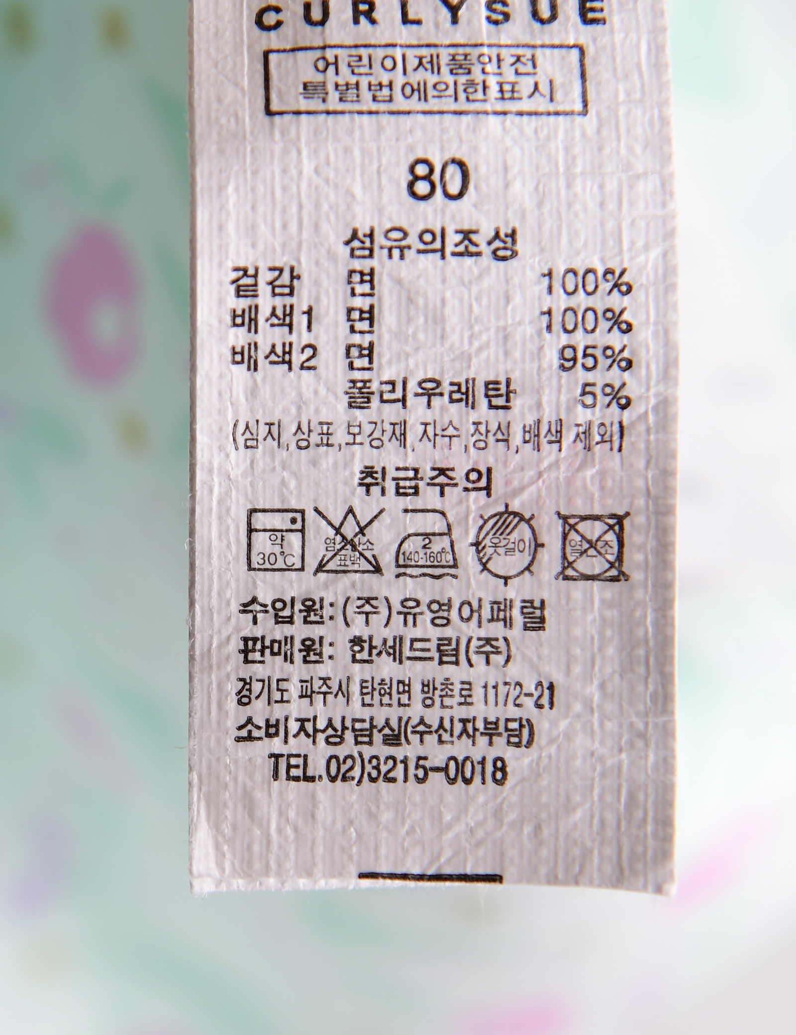 | 세탁방법 및 취급시 주의사항 | 본 세품은 손세탁 하십시오(케어라벨 참고) |