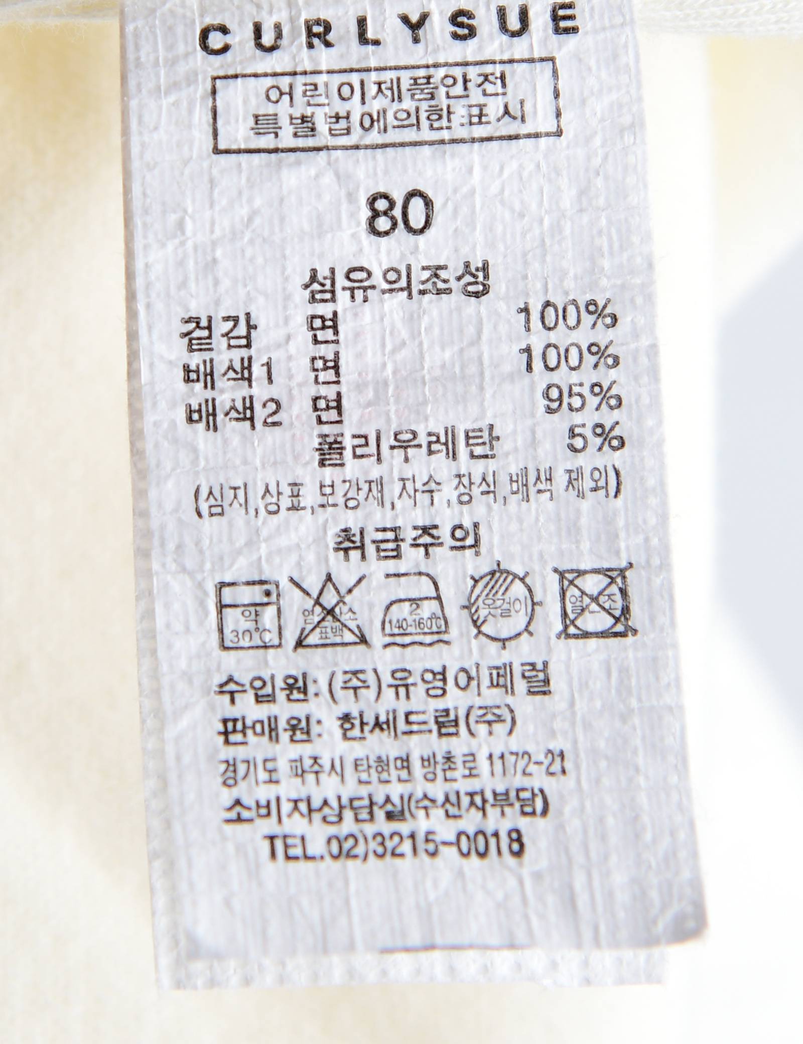 제품소재 (겉감/배색1)면100%(배색2)면95%,폴리우레탄5%