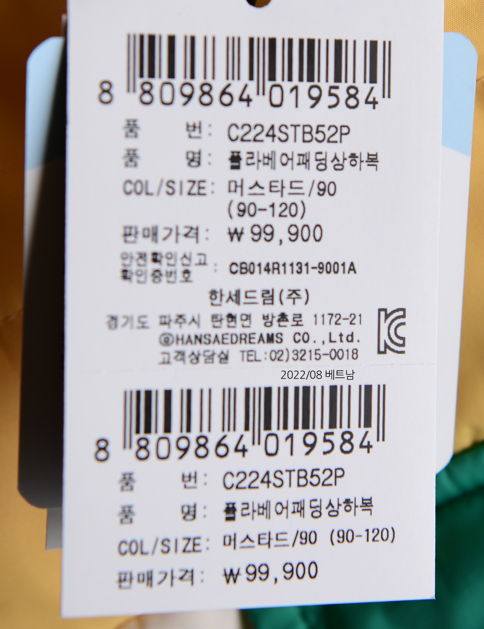 C224STB52P [컬리수] 폴라베어패딩상하복