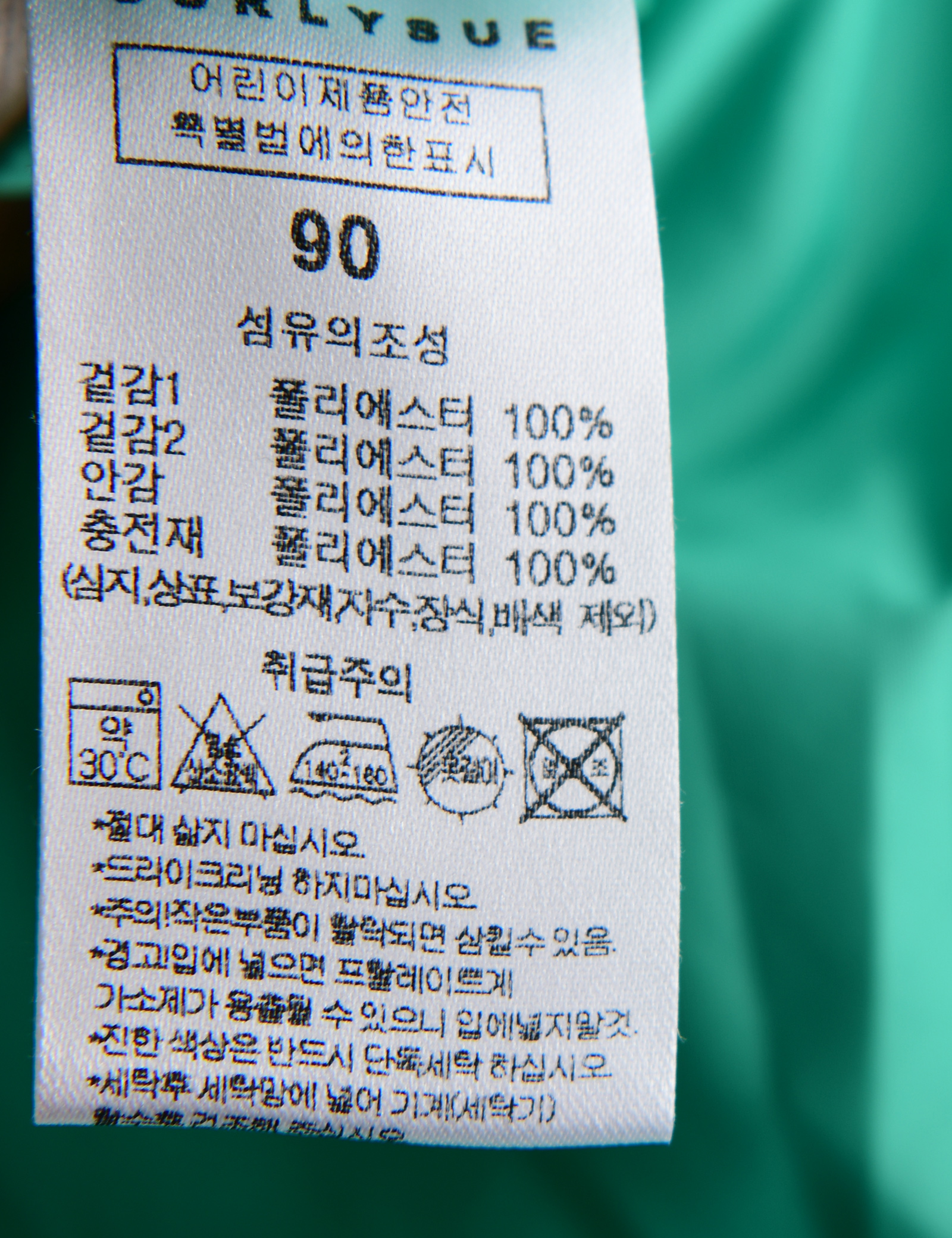 제품소재 (겉감1/겉감2/안감/충전재)폴리에스터100%