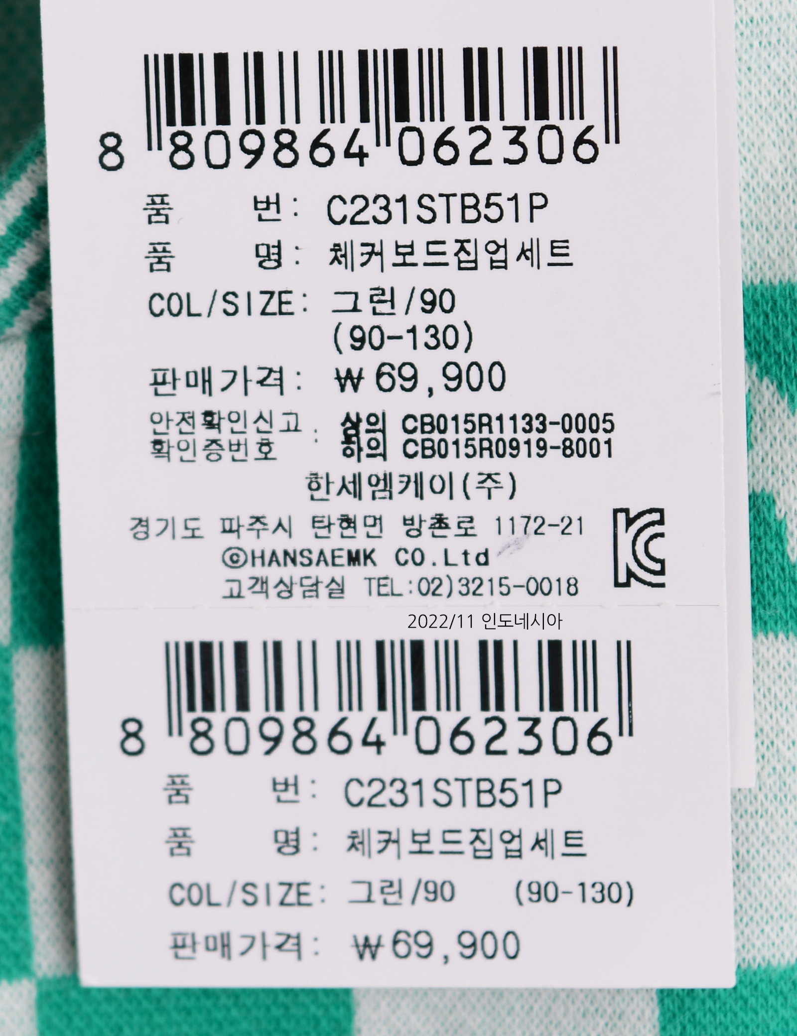 | 상품명 | [컬리수] 체커보드집업세트 |