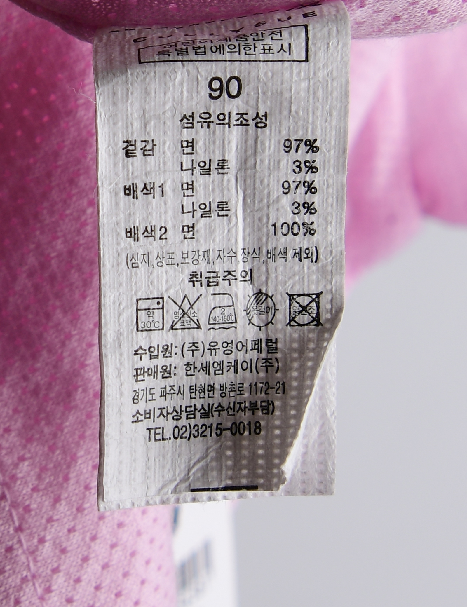 | 세탁방법 및 취급시 주의사항 | 본 세품은 손세탁 하십시오(케어라벨 참고) |