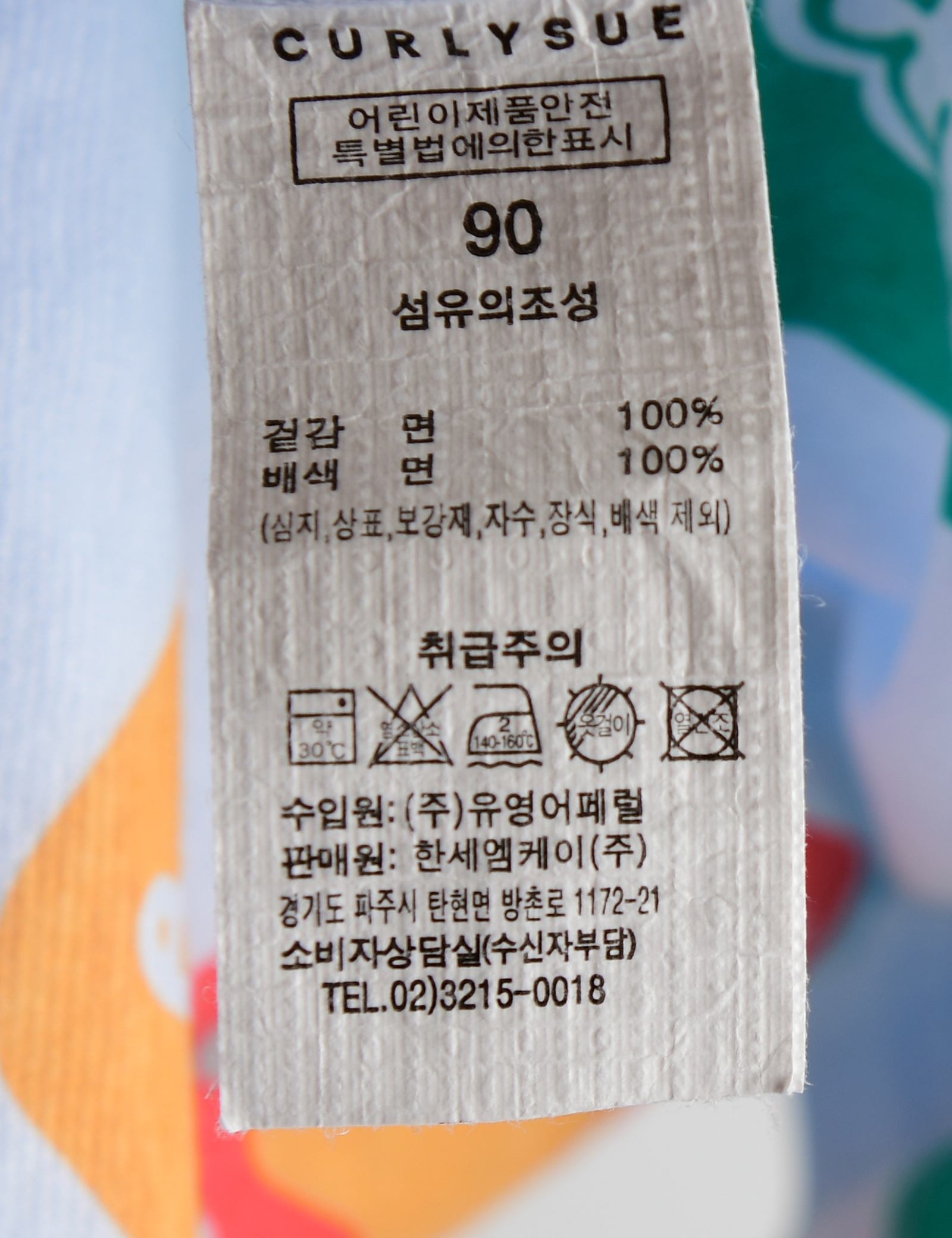 | 세탁방법 및 취급시 주의사항 | 본 세품은 손세탁 하십시오(케어라벨 참고) |
