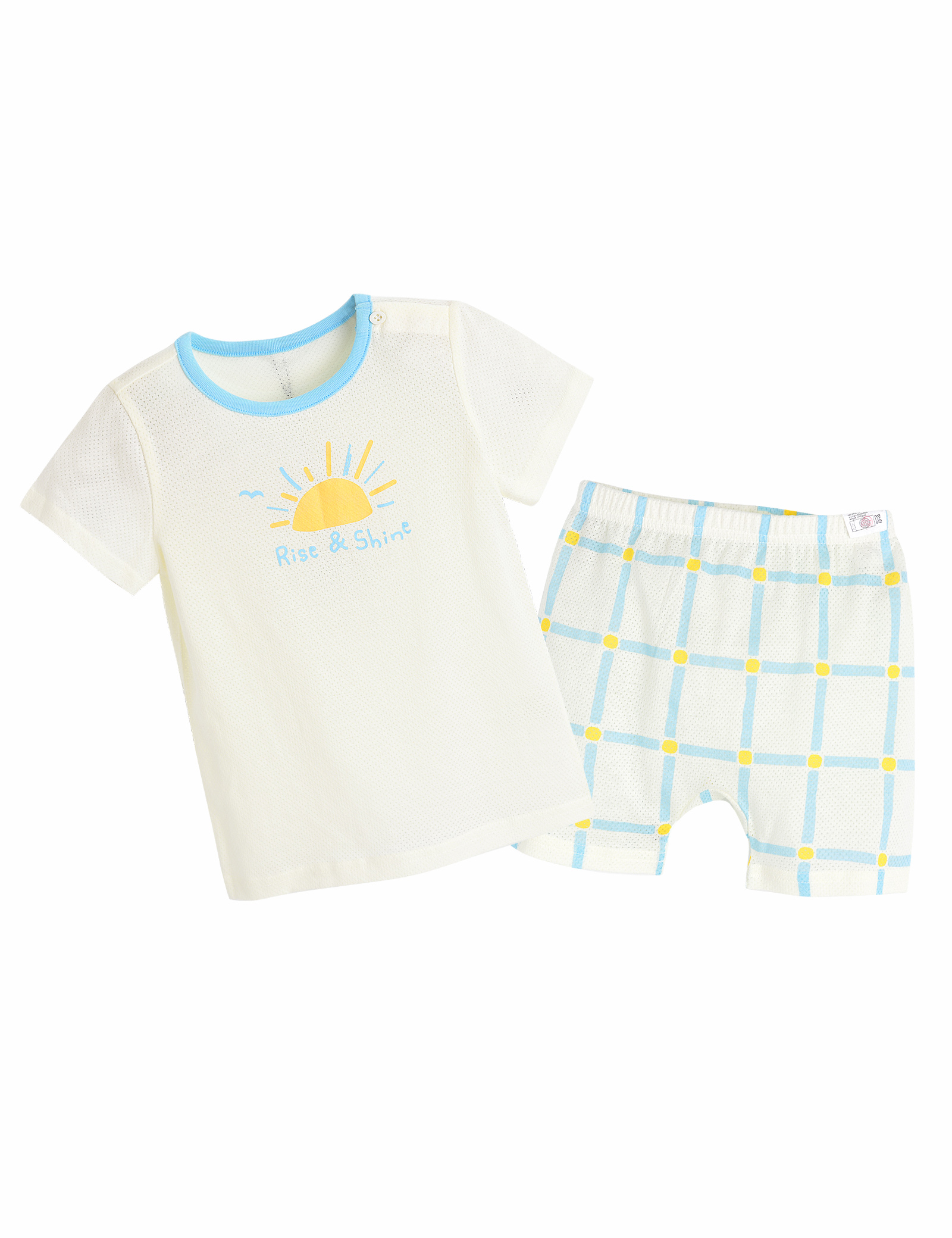 소프트한 컬러감이 돋보이는 베이비 상하복입니다. 소프트한 컬러감으로 여아,남아 모두 착용하기 좋으며 면메쉬 소재를 사용하여 몸에 달라붙지 않아 여름철착용하기 좋습니다.