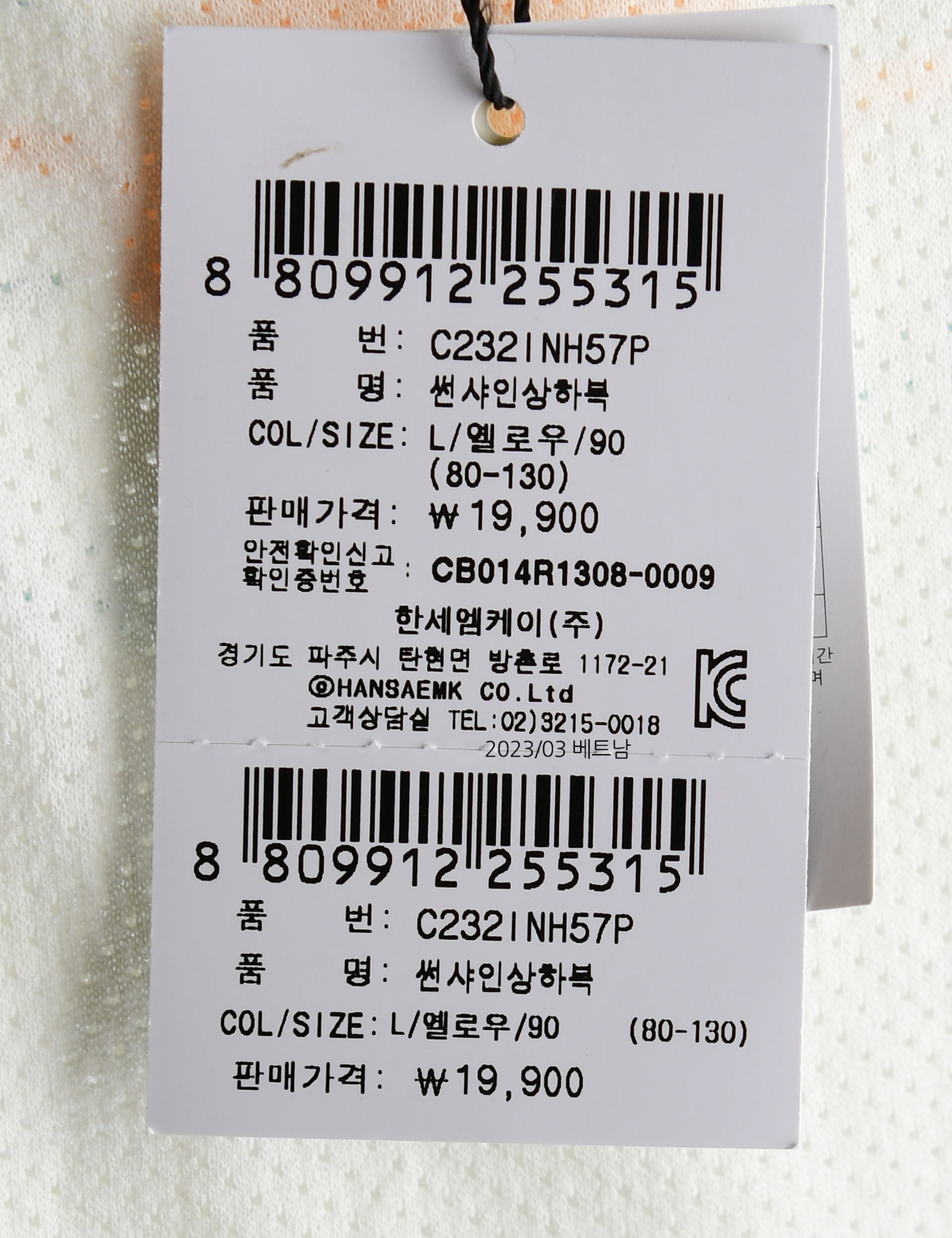제품소재 (겉감/배색1)면97%,나일론3%(배색2)면100%