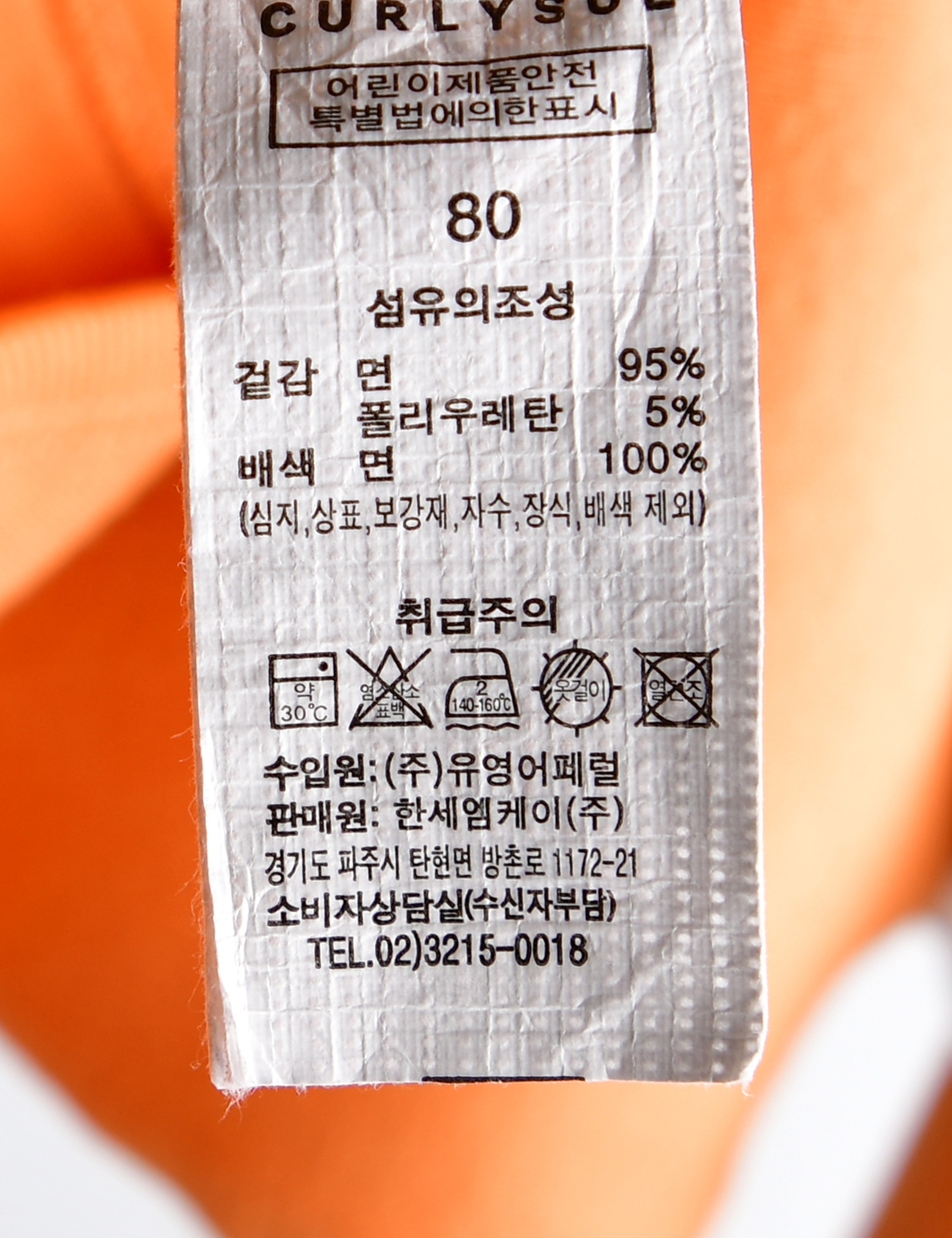 제품소재 (겉감)면95%,폴리우레탄5%(배색)면100%