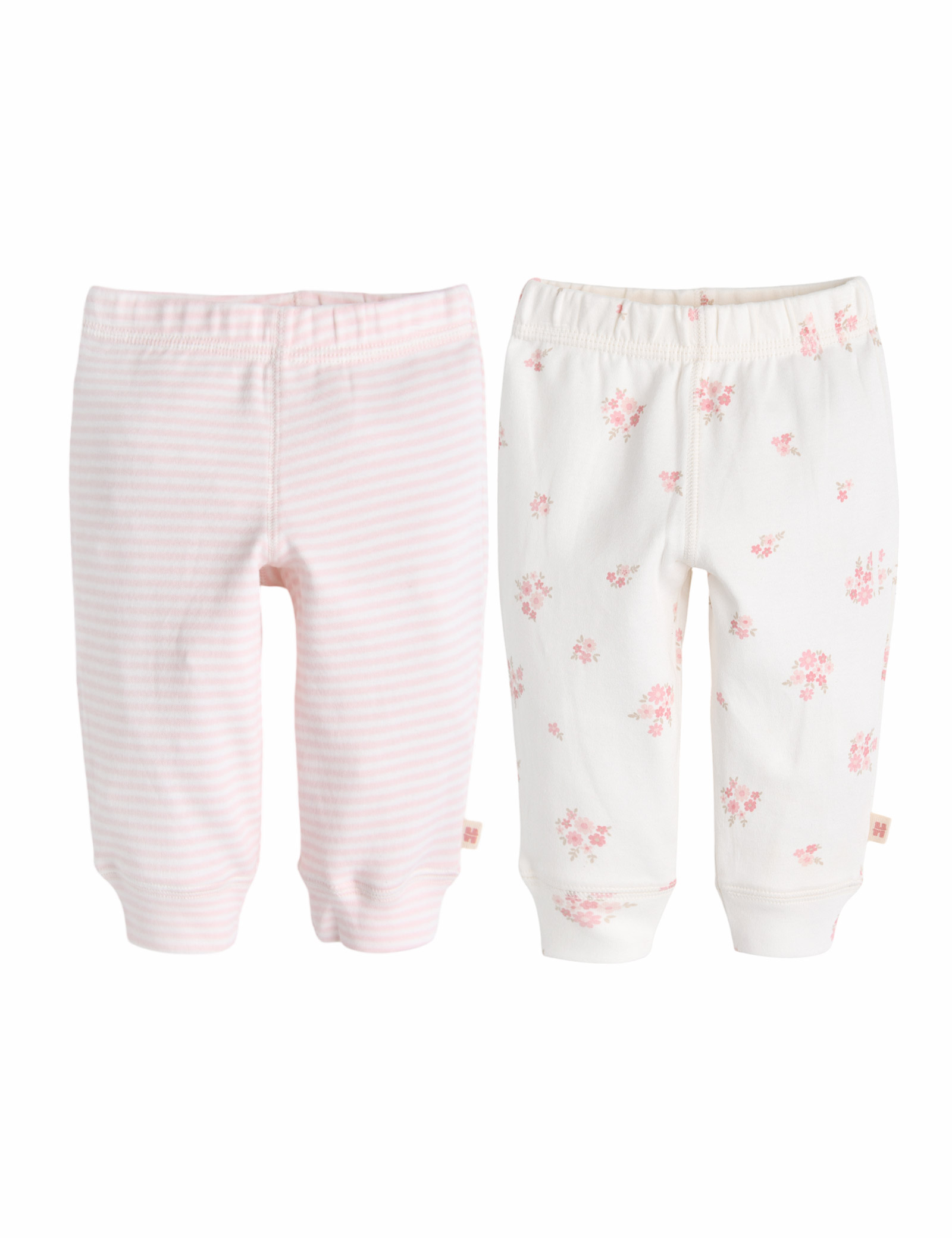 ・플라워 패턴과 스트라이프 패턴 디자인의 팬츠 2종 세트