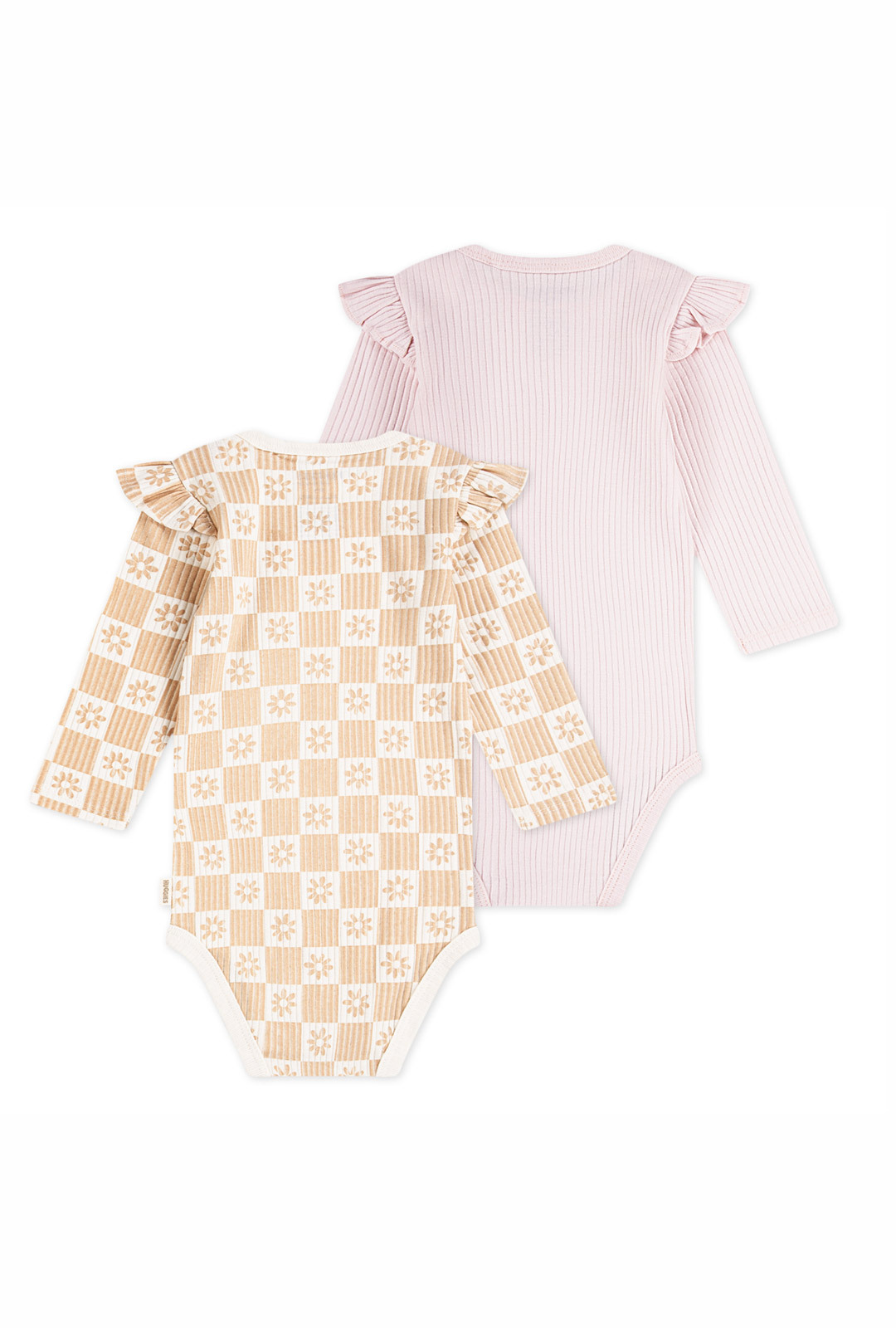 100% 오가닉 코튼으로 만든 바디수트 2종 세트는 아기 피부에도 자극 없이 부드럽게 닿아 하루 종일 편안함을 선사합니다. 러블리한 프릴 디테일과 사랑스러운 패턴이 더해져 아기의 귀여움을 더욱 돋보이게 하며, 어깨와 밑단의 스냅 버튼으로 갈아입히기와 기저귀 갈이가 간편합니다. 두 가지 스타일을 한 번에 만나볼 수 있는 실속 있는 아이템입니다.