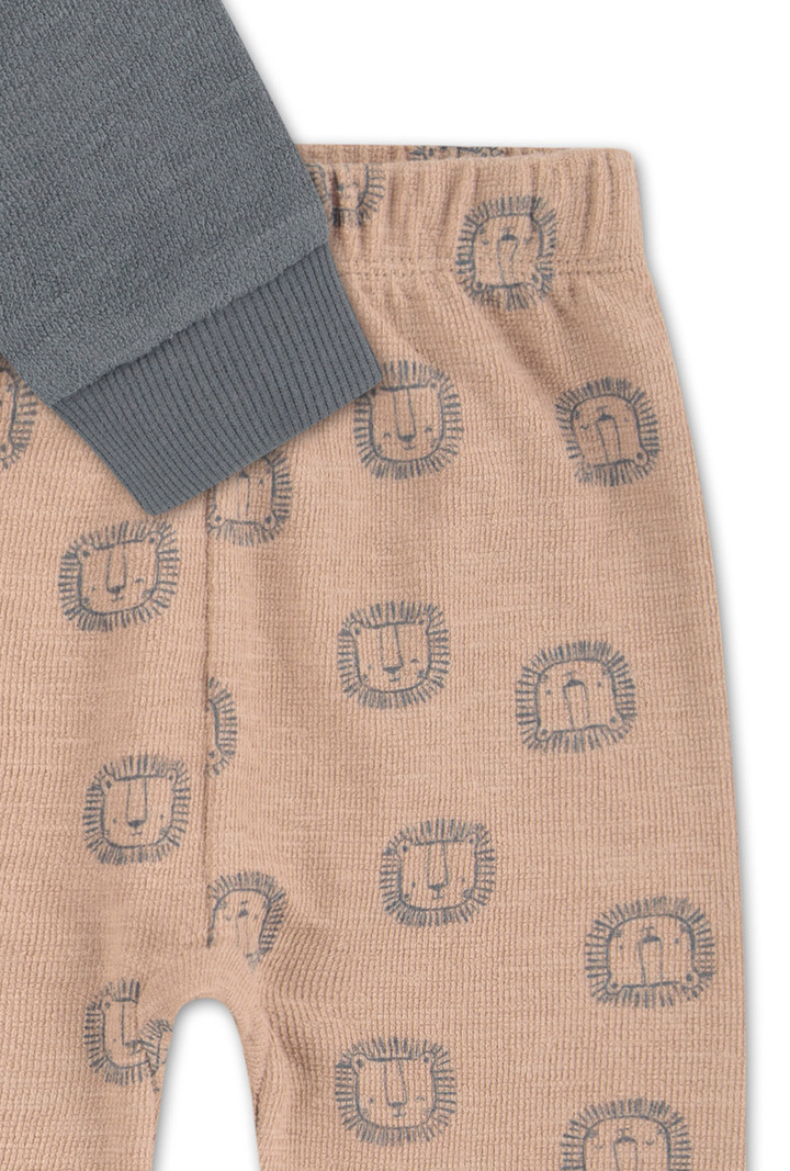 60% 오가닉 콤드 코튼과 40% 리사이클 폴리에스터 혼방 소재로 제작된 이 세트는 피부에 자극 없이 부드럽게 닿으면서도 내구성이 뛰어나 활동이 많은 아이에게 안성맞춤입니다. 부드러운 차콜 컬러의 상의에는 귀여운 스마일 자수 포인트가 더해져 캐주얼하면서도 감각적인 매력을 주며, 베이지 컬러의 하의는 도트 패턴으로 사랑스러운 분위기를 완성합니다. 편안함과 실용성은 물론, 디자인까지 고려한 데일리 아이템으로 특별한 날에도 잘 어울립니다.