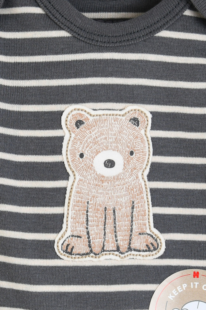 귀여운 곰돌이 전판 프린트와 스트라이프 패턴에 앞 전체 곰돌이 그래픽을 포인트로 주어 데일리하게 실용적으로 착용할 수 있는 아이템입니다.