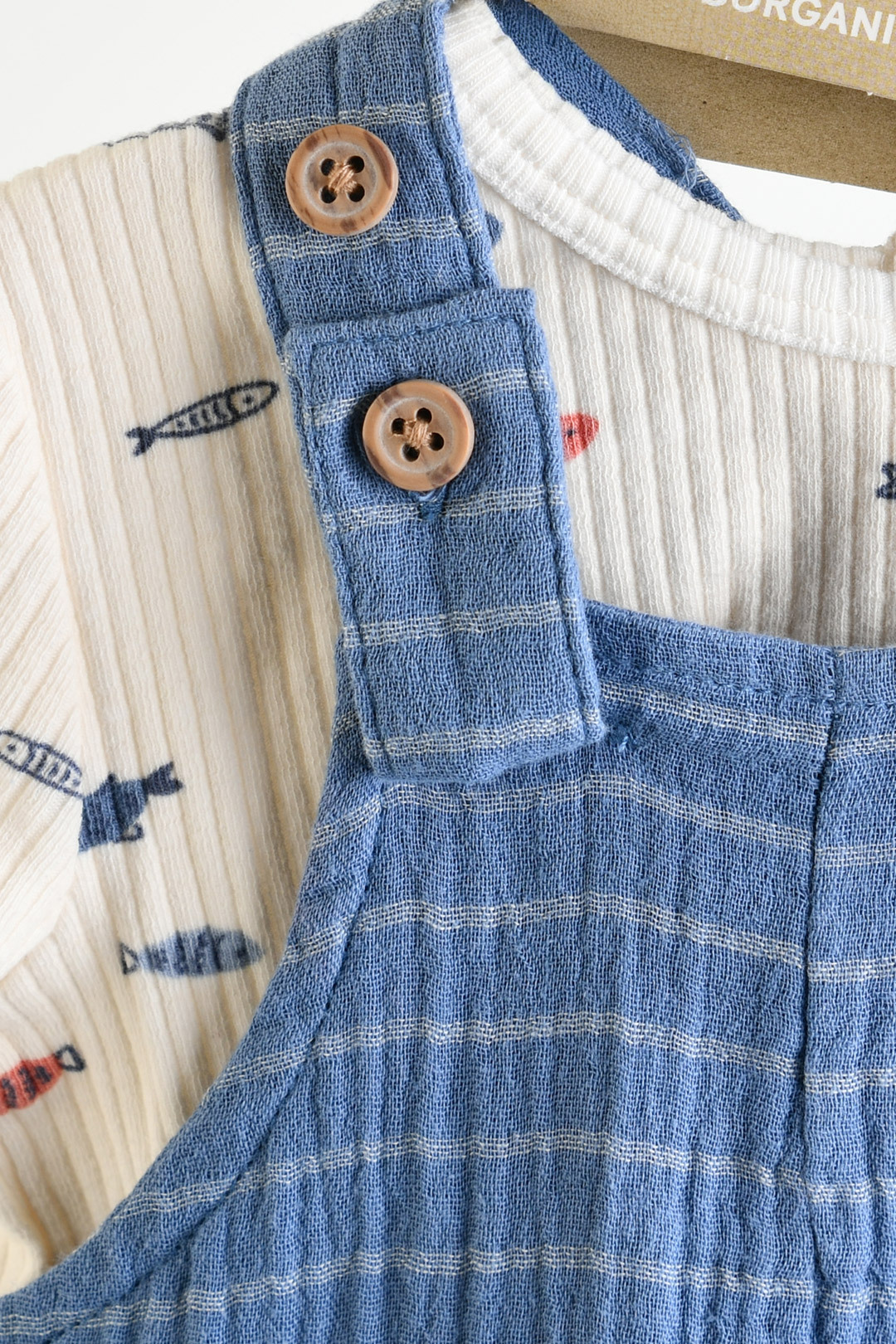 100% 오가닉 콤드 코튼의 이중직 모슬린 원단을 사용하여 고급스러우면서도 시원한 오버롤.