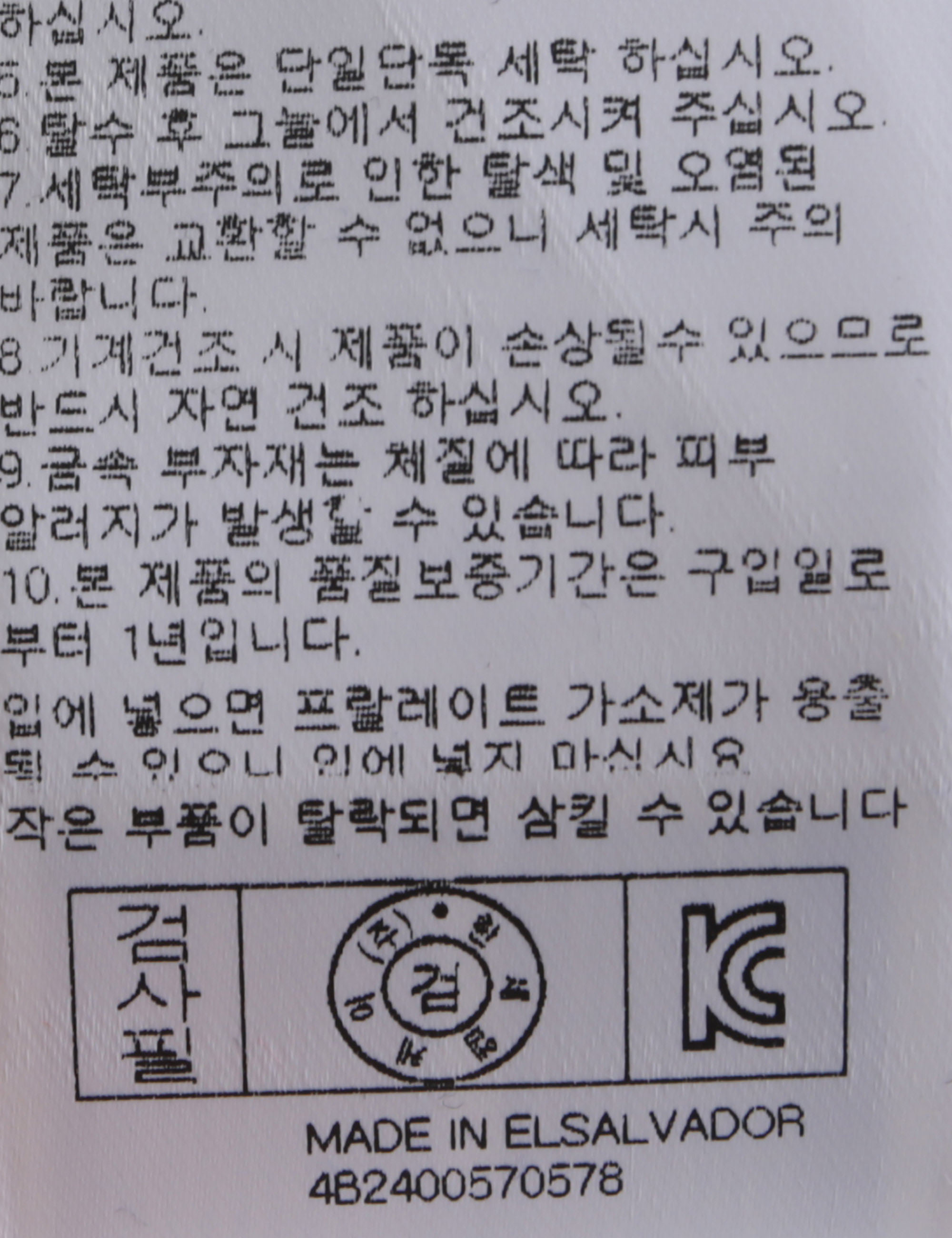 | 세탁방법 및 취급시 주의사항 | 중성세제로 단 시간내에 세탁하십시오.(케어라벨참고) |