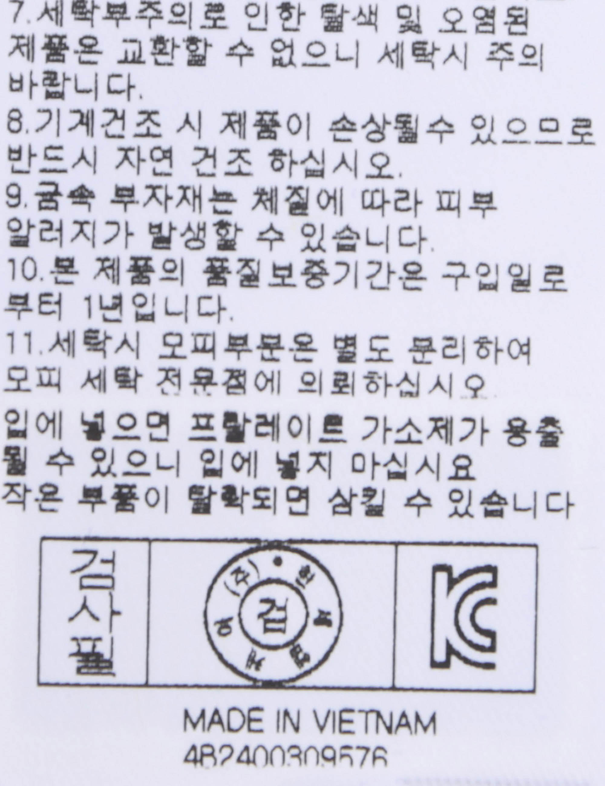 세탁방법 및 취급시 주의사항 중성세제로 단 시간내에 세탁하십시오.(케어라벨참고)