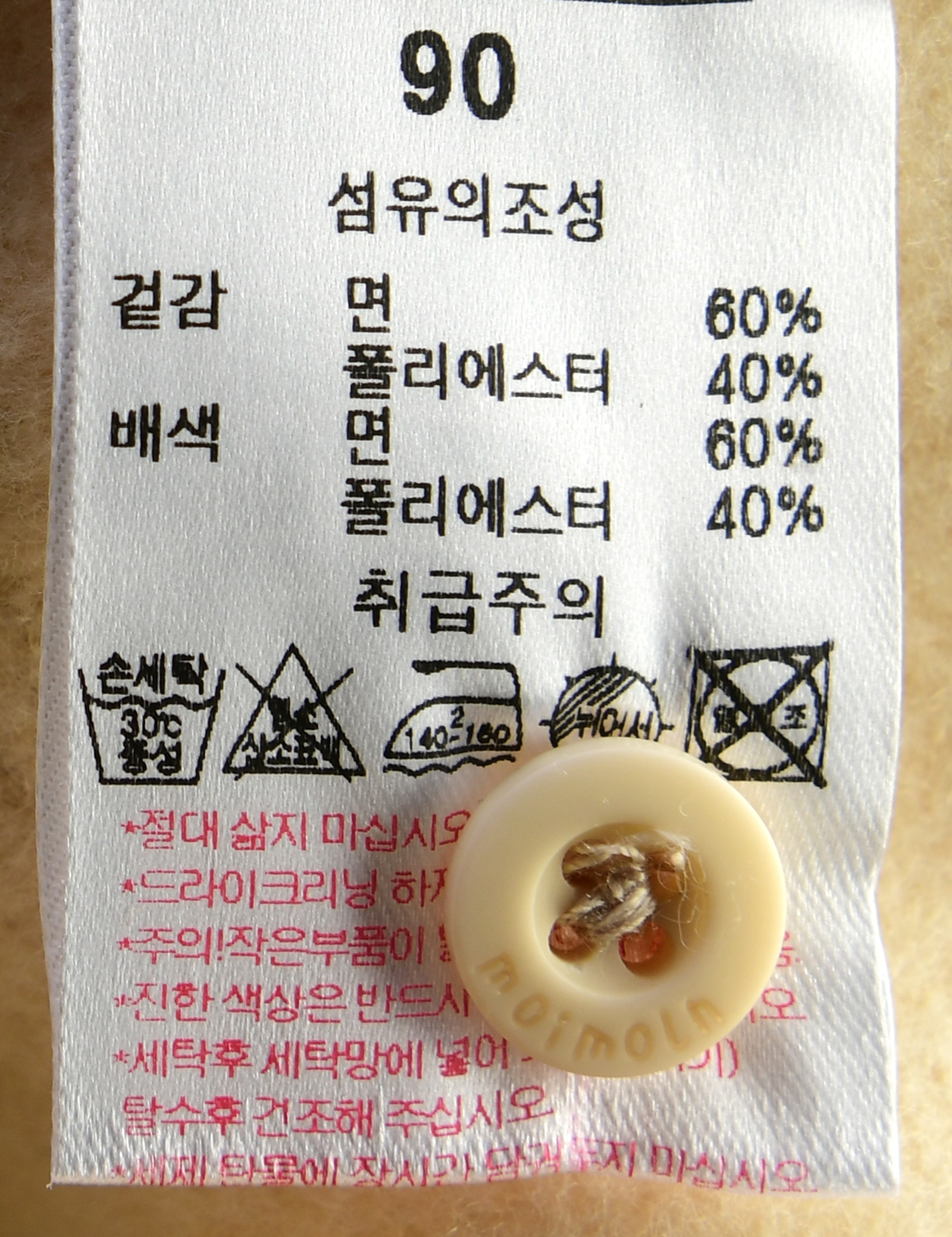 | 세탁방법 및 취급시 주의사항 | 본 세품은 손세탁 하십시오(케어라벨 참고) |