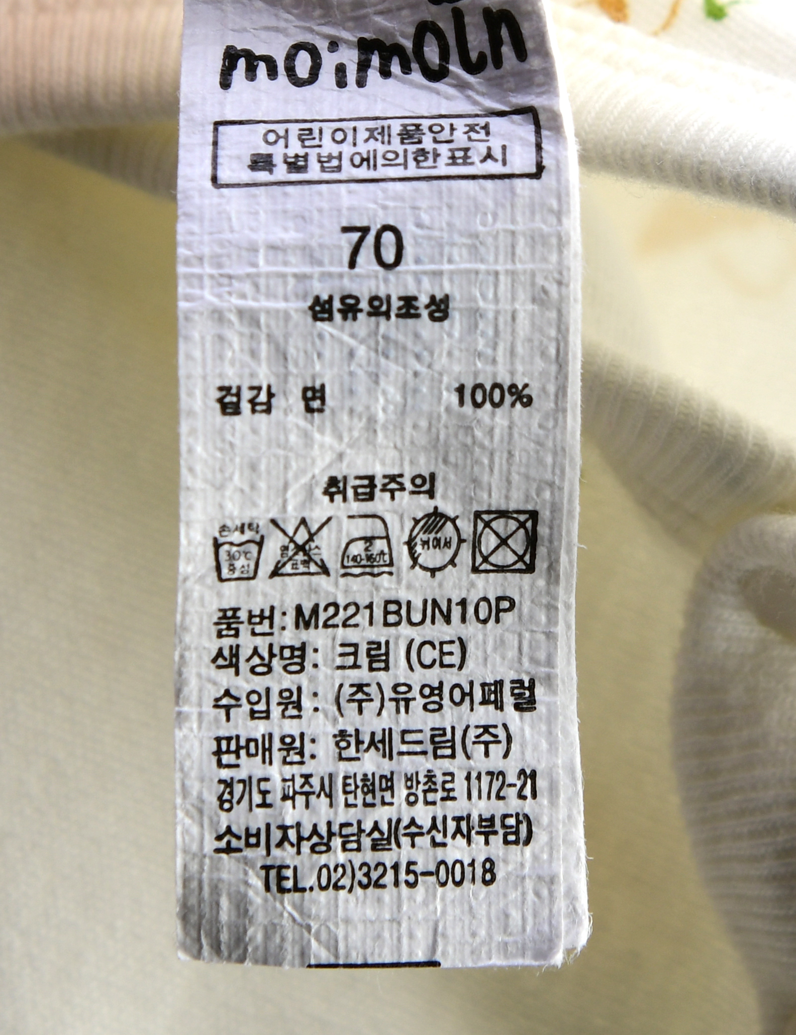 제품소재 (겉감)면100%