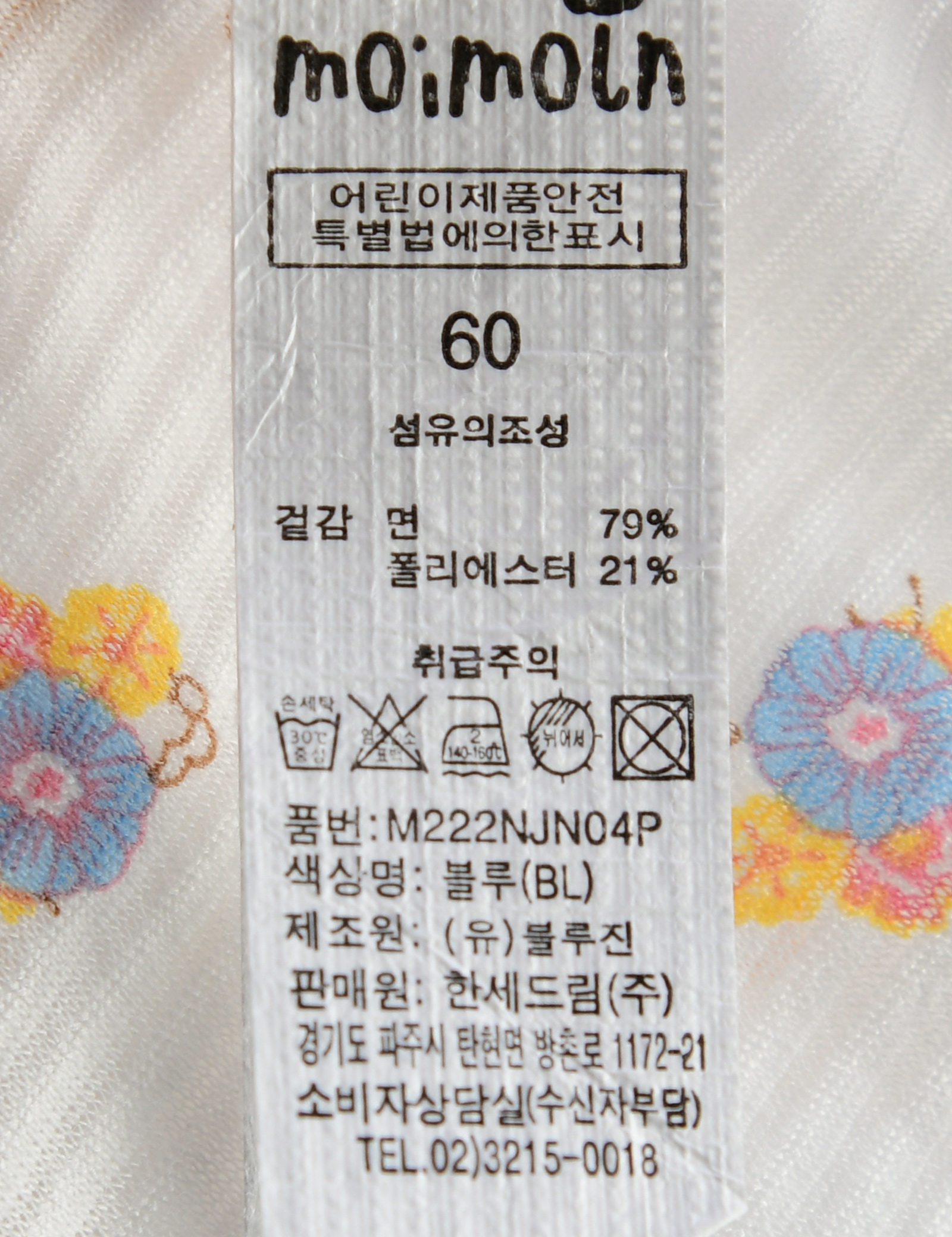 | 세탁방법 및 취급시 주의사항 | 본 세품은 손세탁 하십시오(케어라벨 참고) |