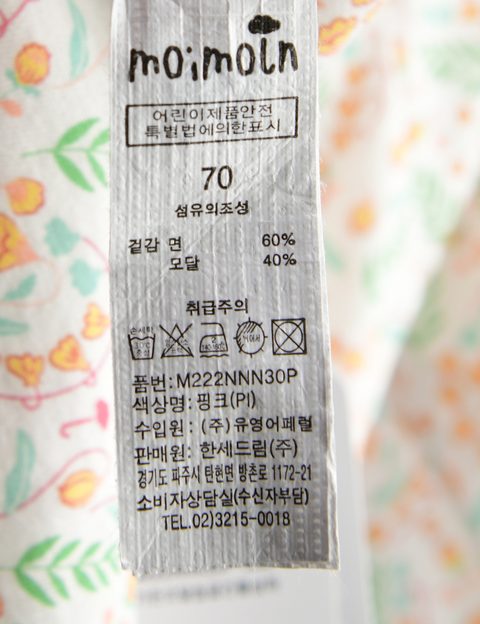 브랜드 홈 바로가기| 제품소재 | (겉감)면60%,모달40% |
