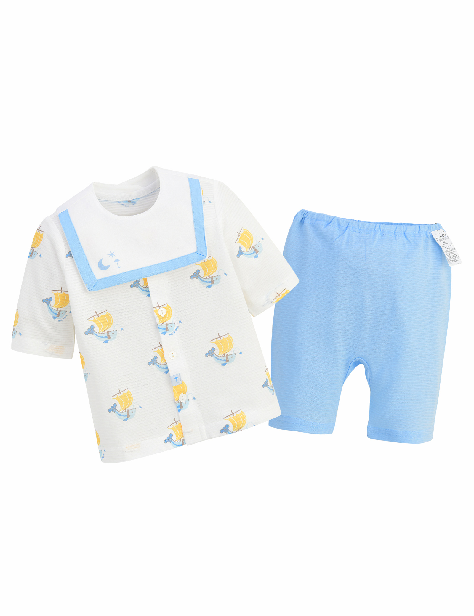 실내상하복의 경우 사이즈에 따라 단추의 위치가 달라질 수 있습니다. (70~80사이즈 : 앞면 전체단추/ 90사이즈~ : 어깨 일부단추)