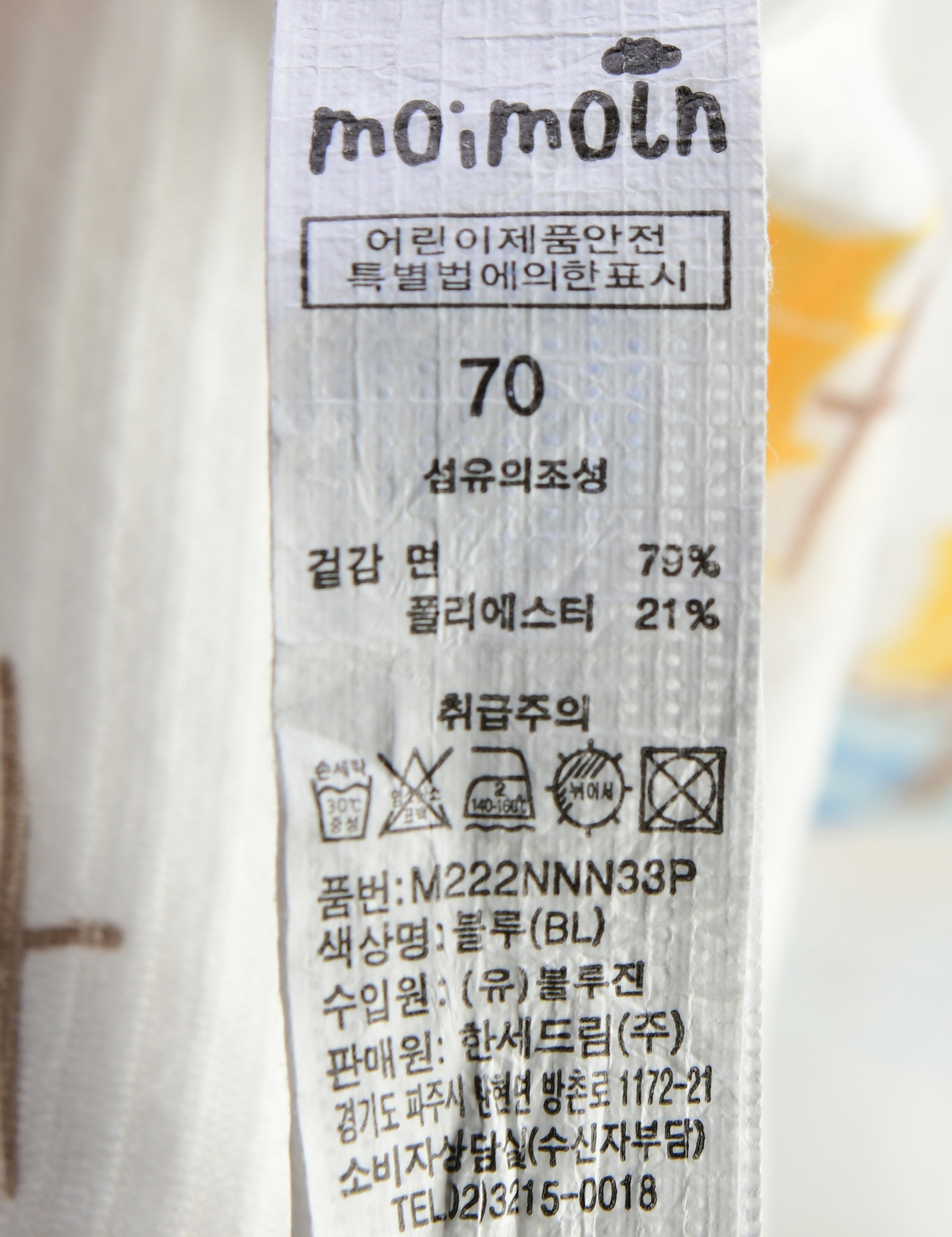 제품소재 (겉감)면79%,폴리에스터21%