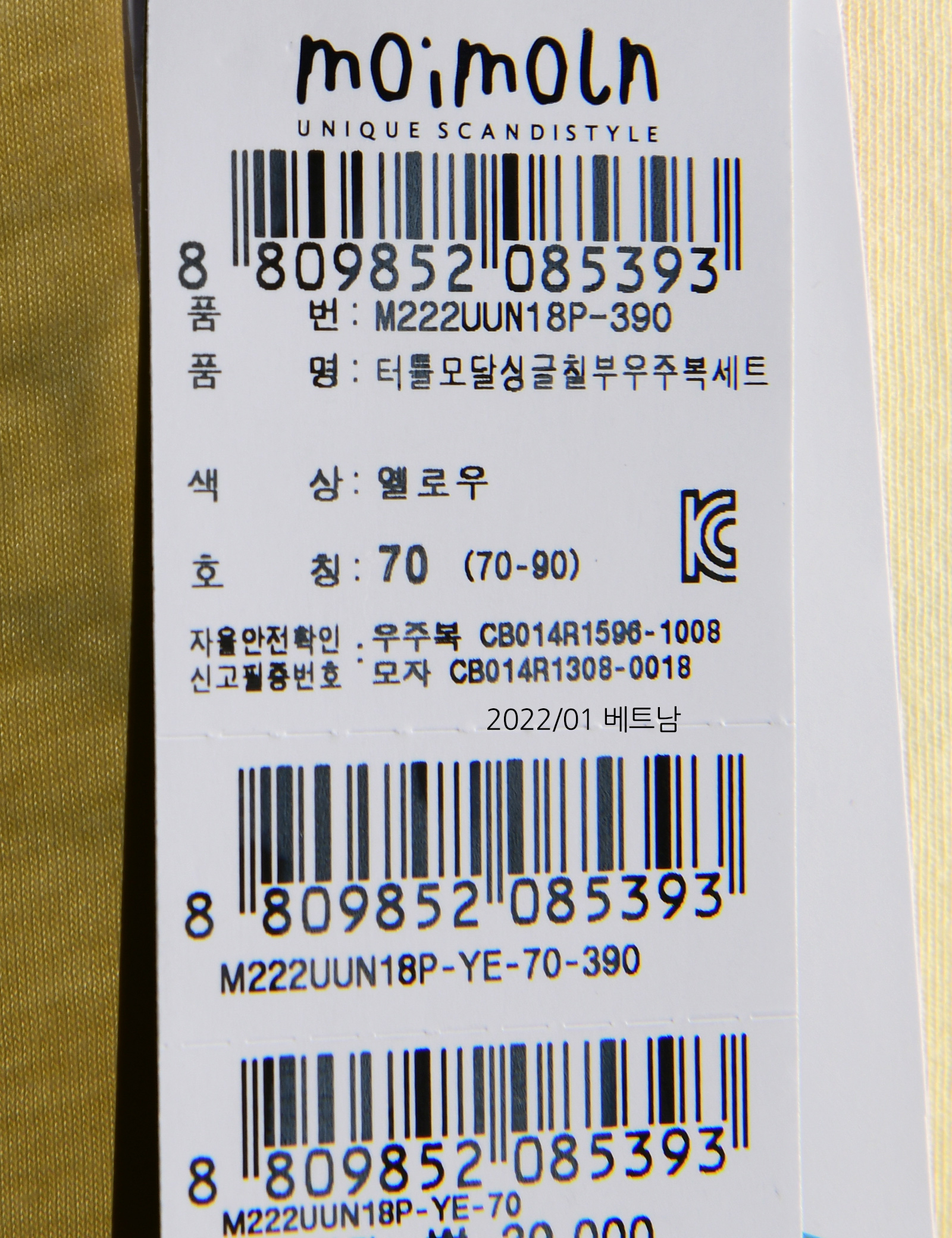 | 상품명 | [모이몰른] 터틀 모달싱글 칠부우주복세트 [여름] |