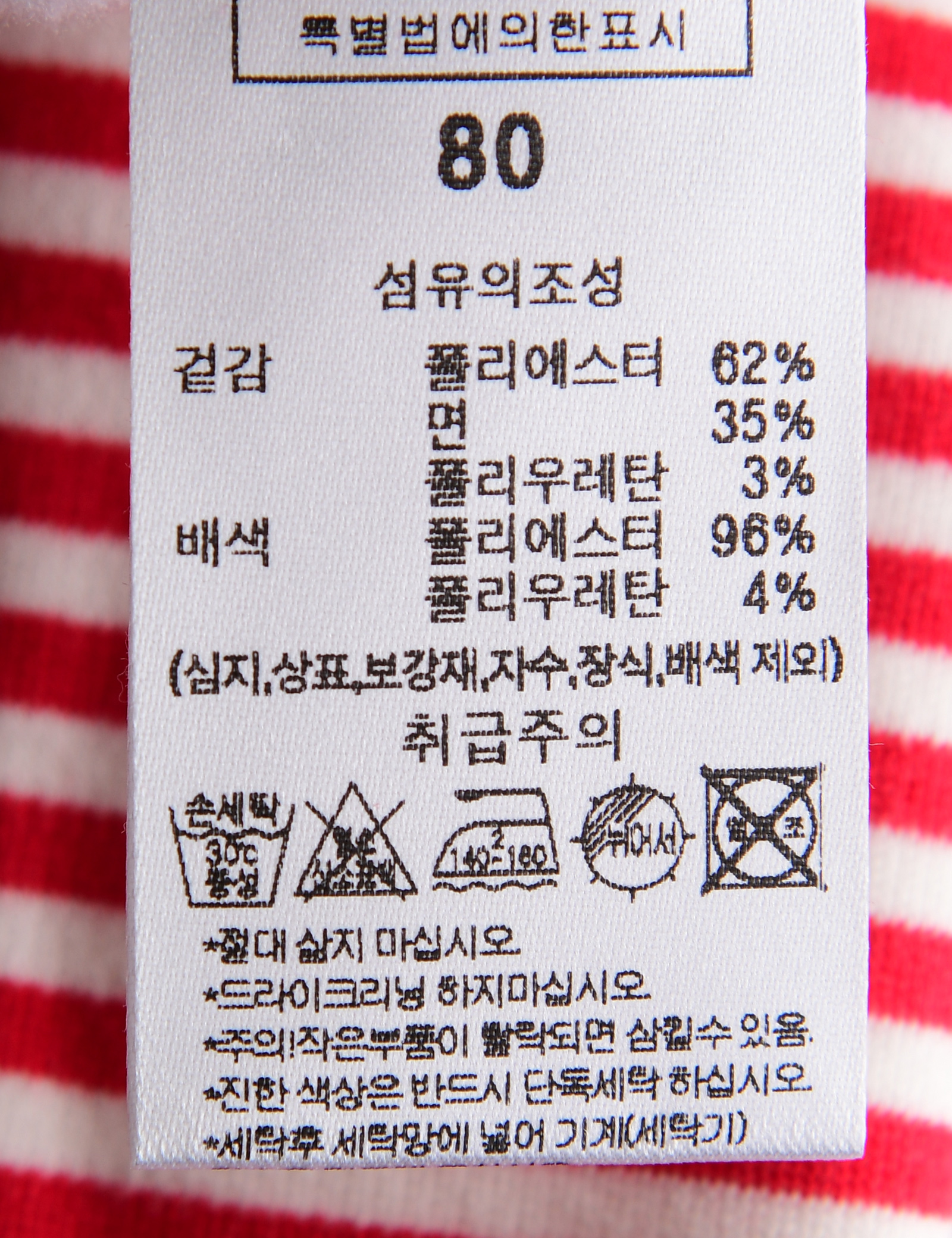 | 세탁방법 및 취급시 주의사항 | 본 세품은 손세탁 하십시오(케어라벨 참고) |
