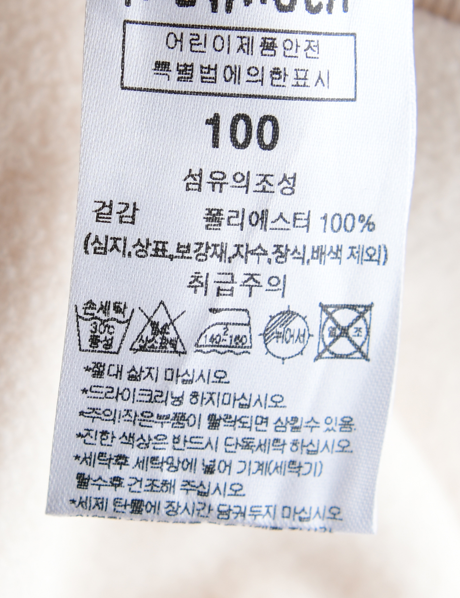 | 세탁방법 및 취급시 주의사항 | 본 세품은 손세탁 하십시오(케어라벨 참고) |