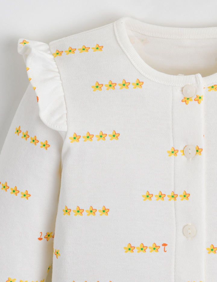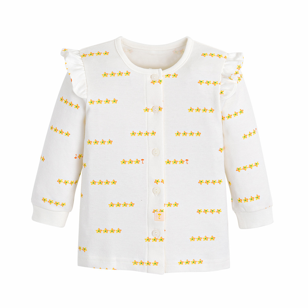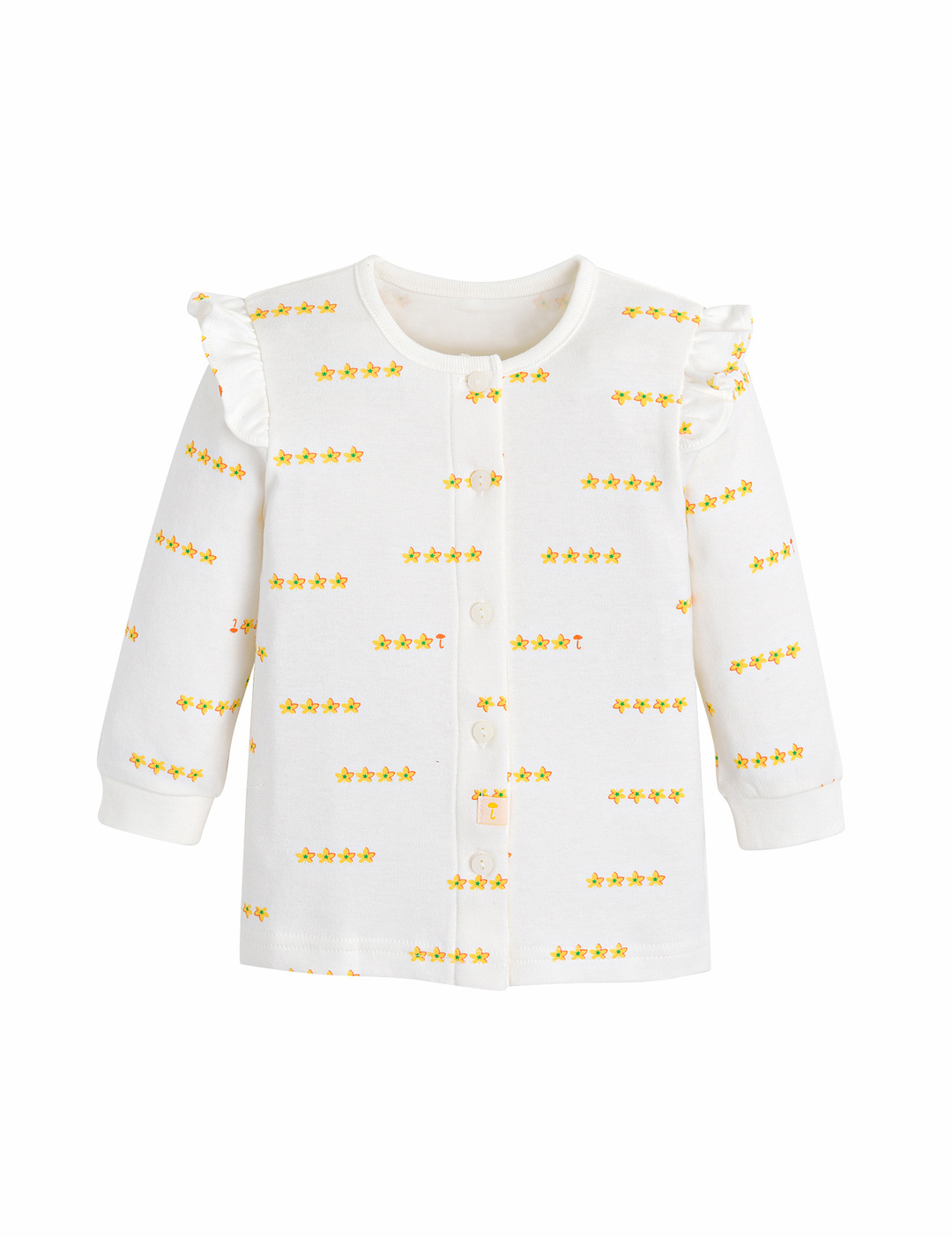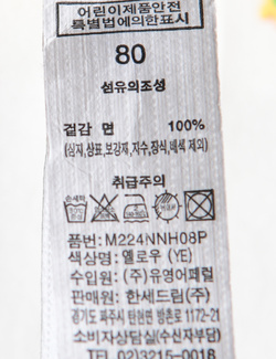 실내상하복의 경우 사이즈에 따라 단추의 위치가 달라질 수 있습니다 (70~80사이즈: 앞면 전체단추 / 90사이즈~ : 어깨 일부 단추)