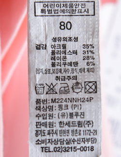 브랜드 홈 바로가기| 제품소재 | (겉감)아크릴35%,폴리에스터31%,레이온28%,폴리우레탄6% |