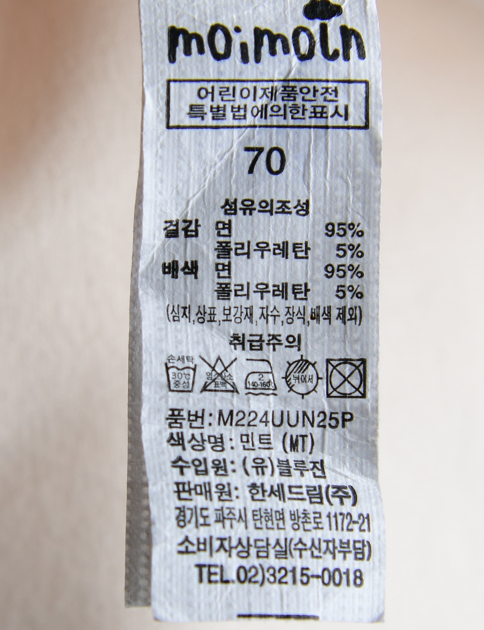 | 세탁방법 및 취급시 주의사항 | 본 세품은 손세탁 하십시오(케어라벨 참고) |