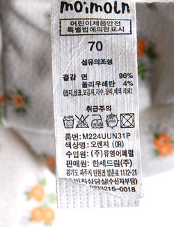 | 세탁방법 및 취급시 주의사항 | 본 세품은 손세탁 하십시오(케어라벨 참고) |