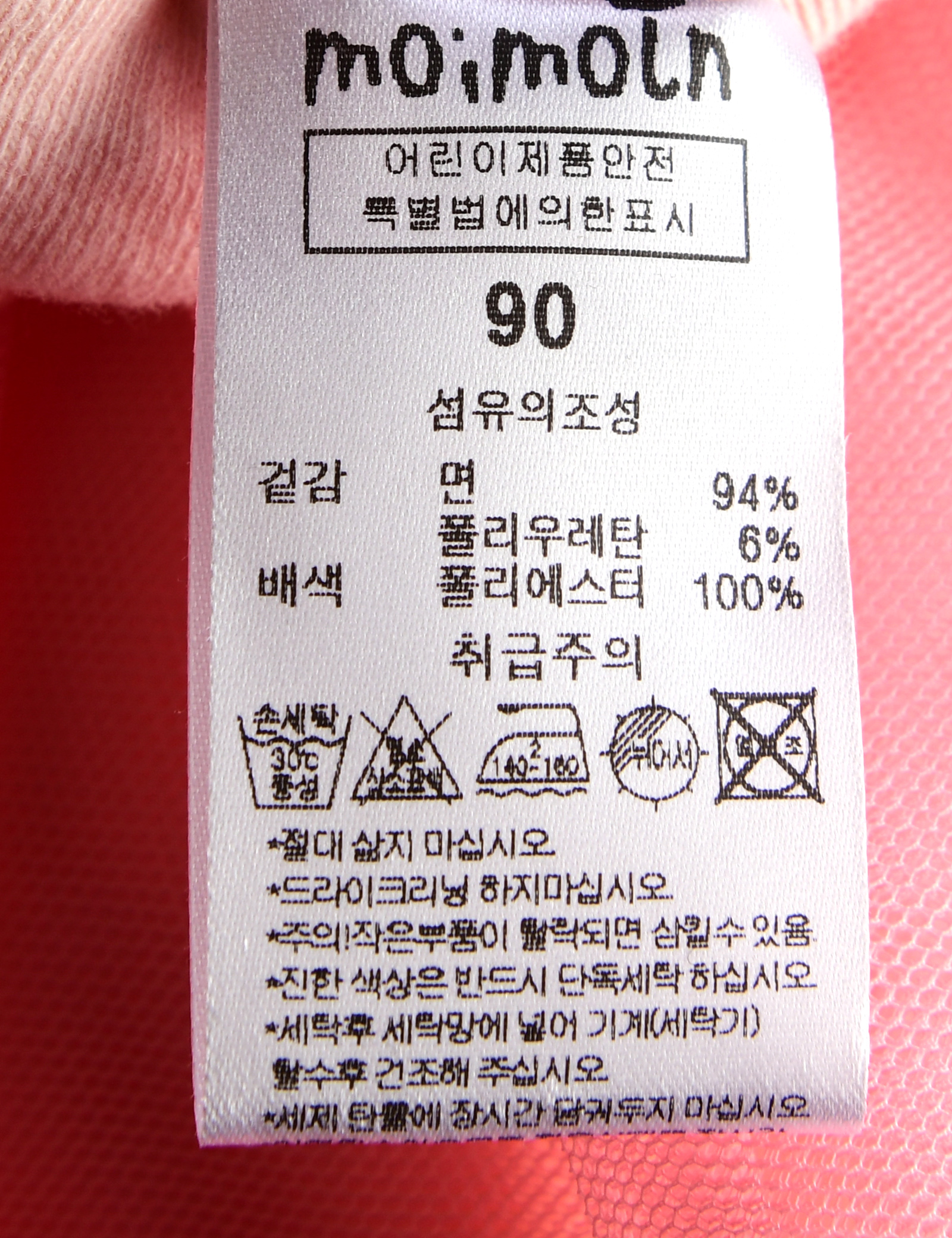 제품소재 (겉감)면94%,폴리우레탄6%(배색)폴리에스터100%