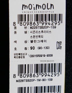 제품소재 (겉감)면95%,폴리우레탄5%