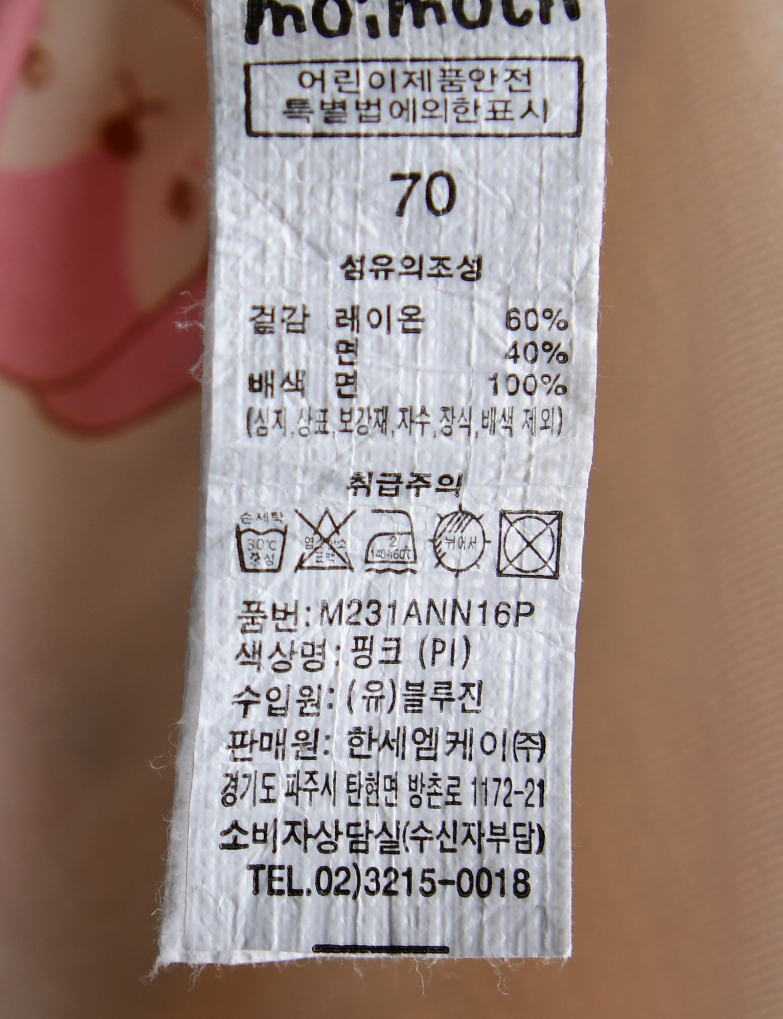 | 세탁방법 및 취급시 주의사항 | 본 세품은 손세탁 하십시오(케어라벨 참고) |