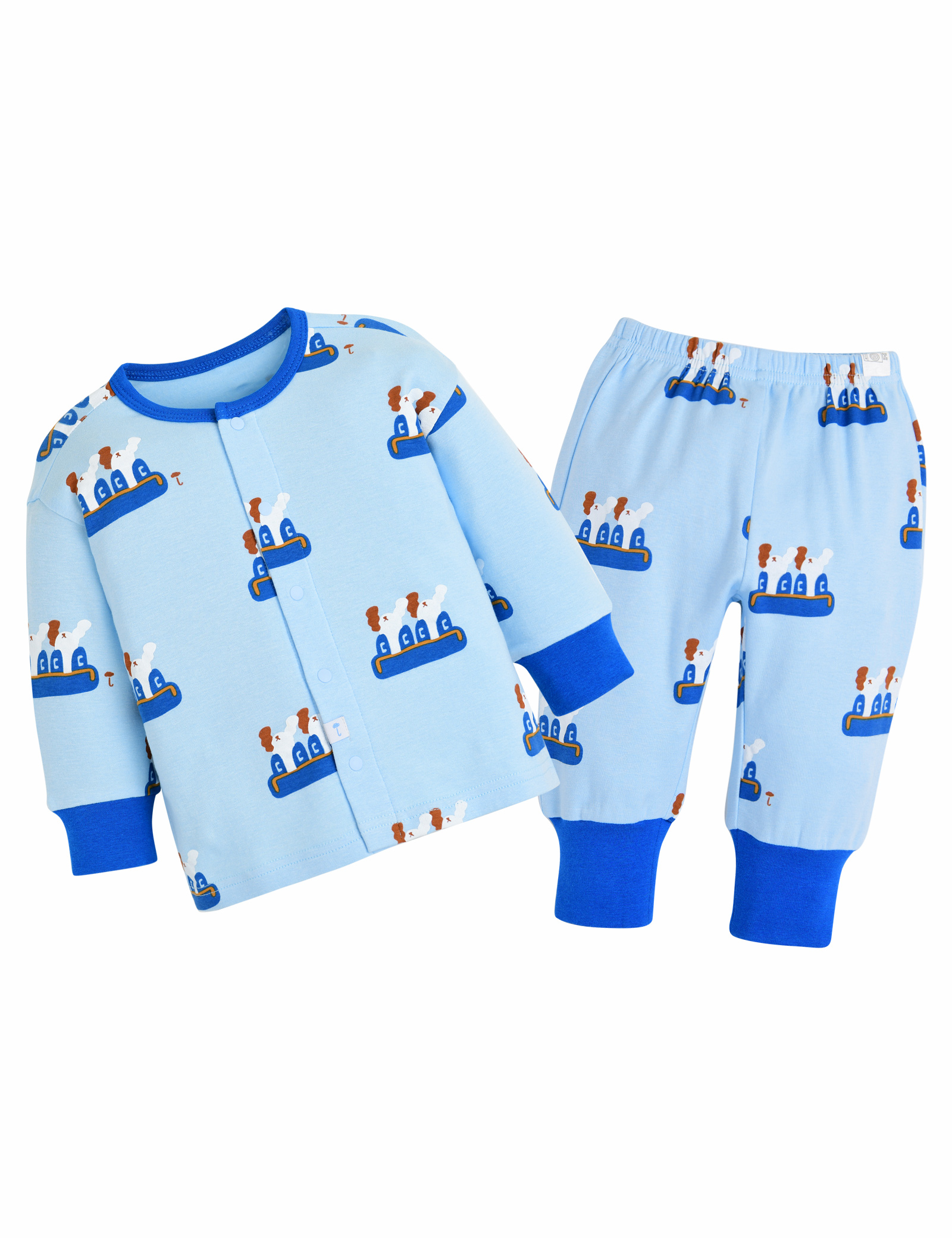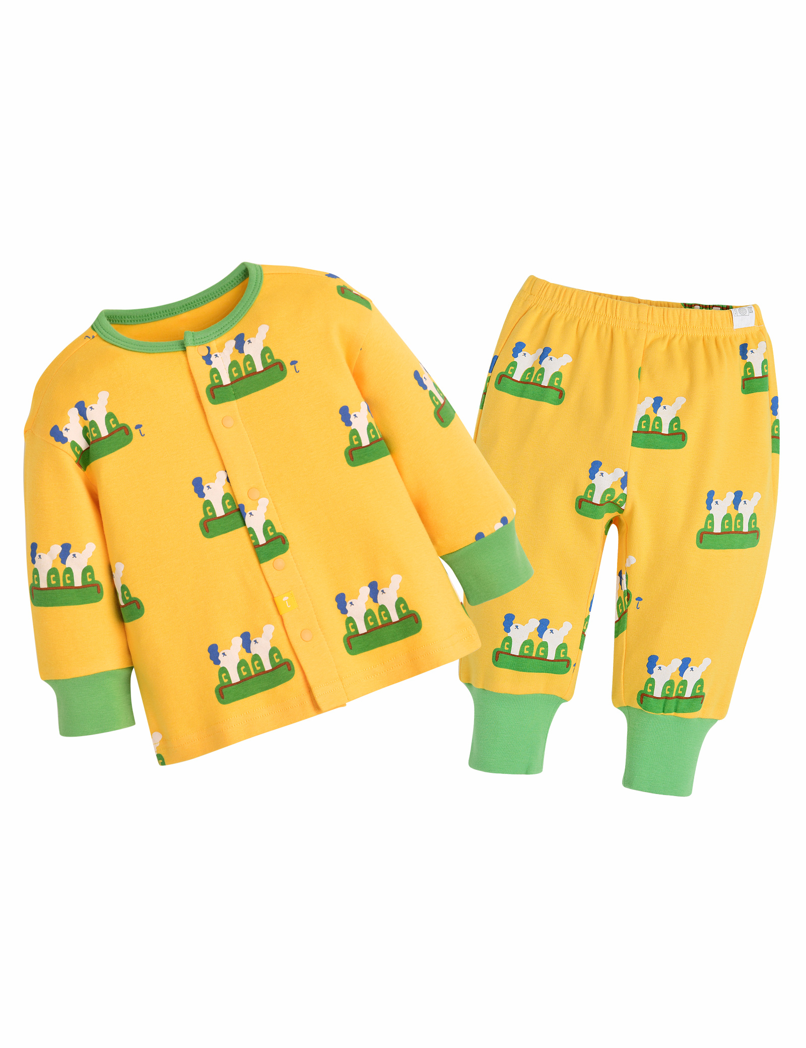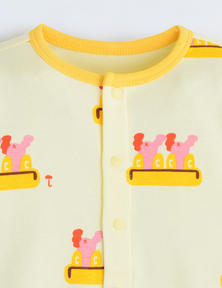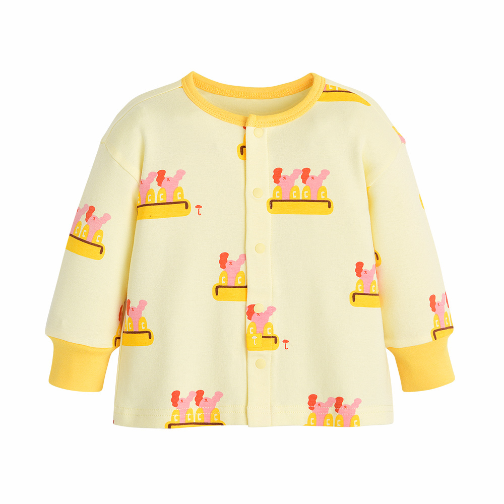 실내상하복의 경우 사이즈에 따라 단추의 위치가 달라질 수 있습니다 (70~80사이즈: 앞면 전체단추 / 90사이즈~ : 어깨 일부 단추)