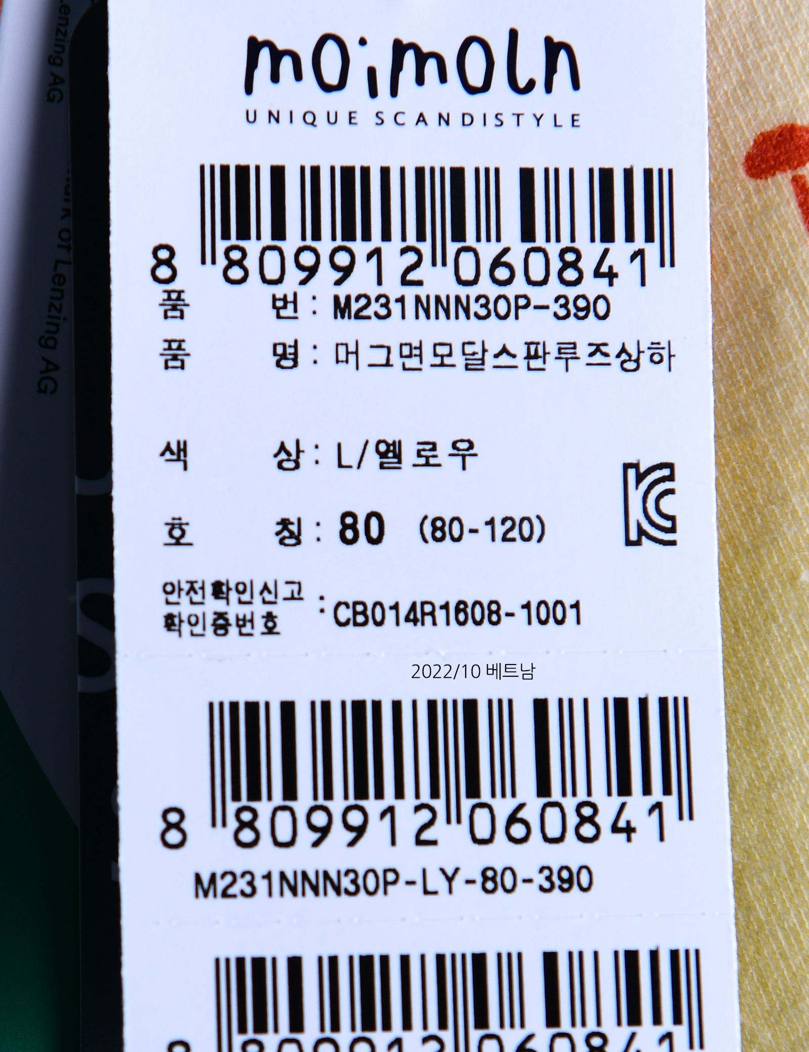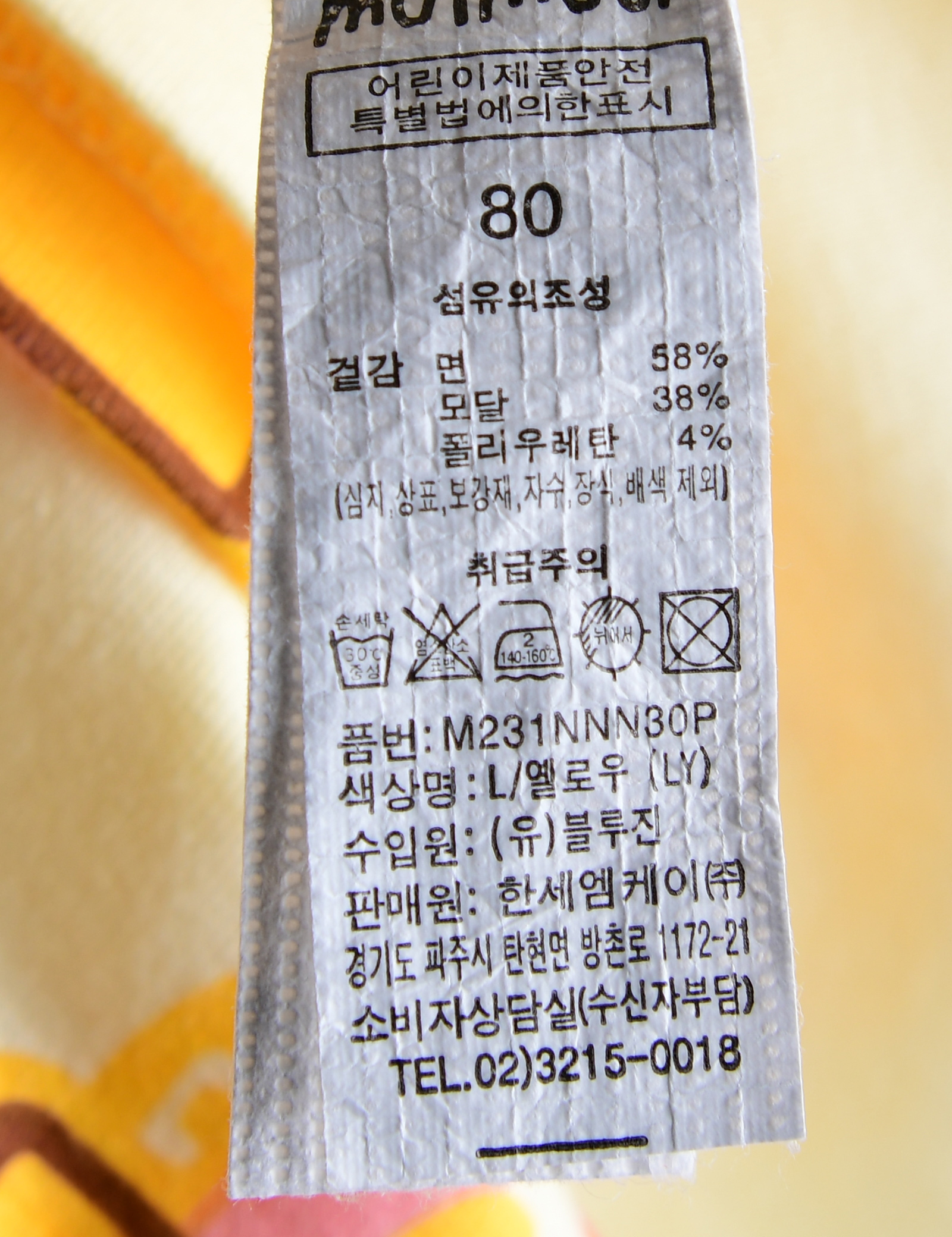 제품소재 (겉감)면58%,모달38%,폴리우레탄4%