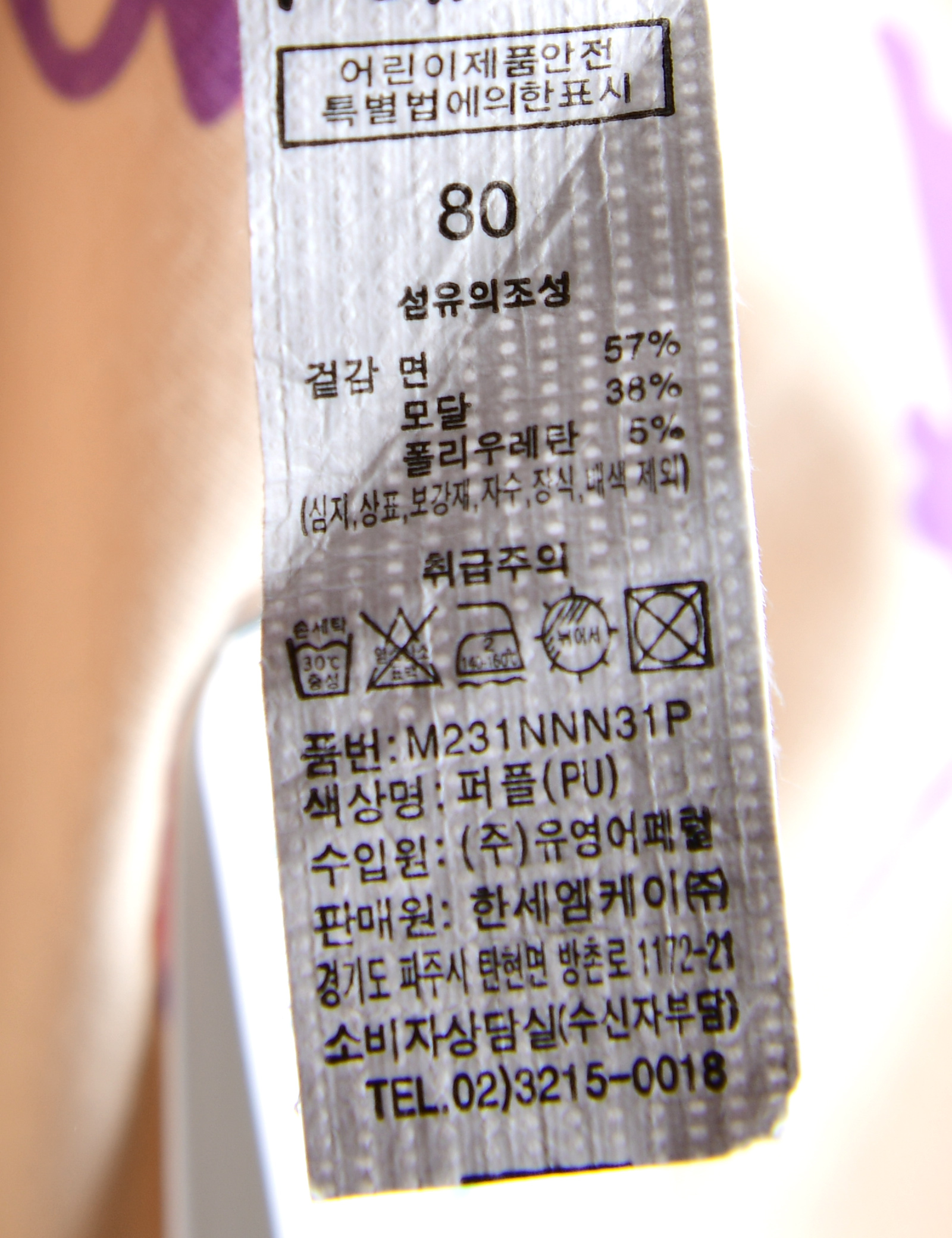 | 세탁방법 및 취급시 주의사항 | 본 세품은 손세탁 하십시오(케어라벨 참고) |