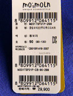 | 상품명 | [모이몰른] 클립보머2단쭈리후드티셔츠 |