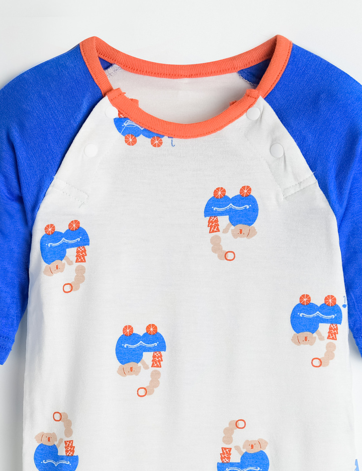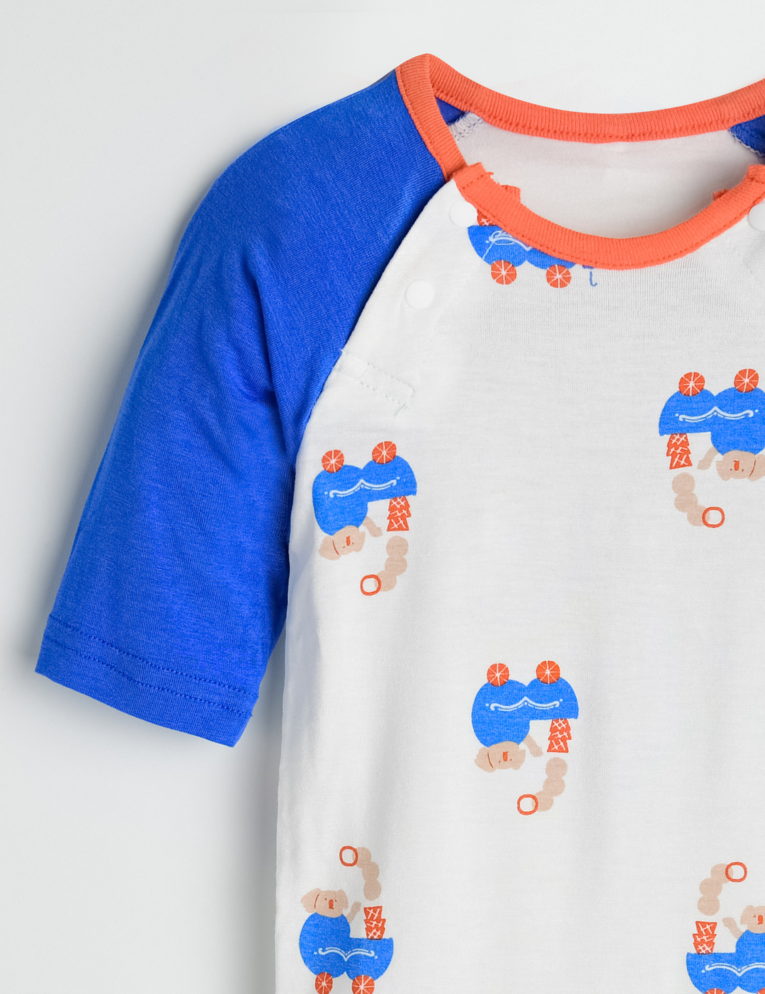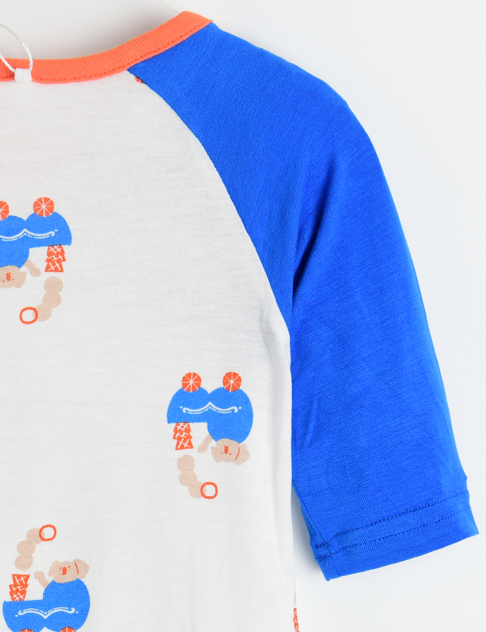 래글런 소매 배색과 네크랍바에