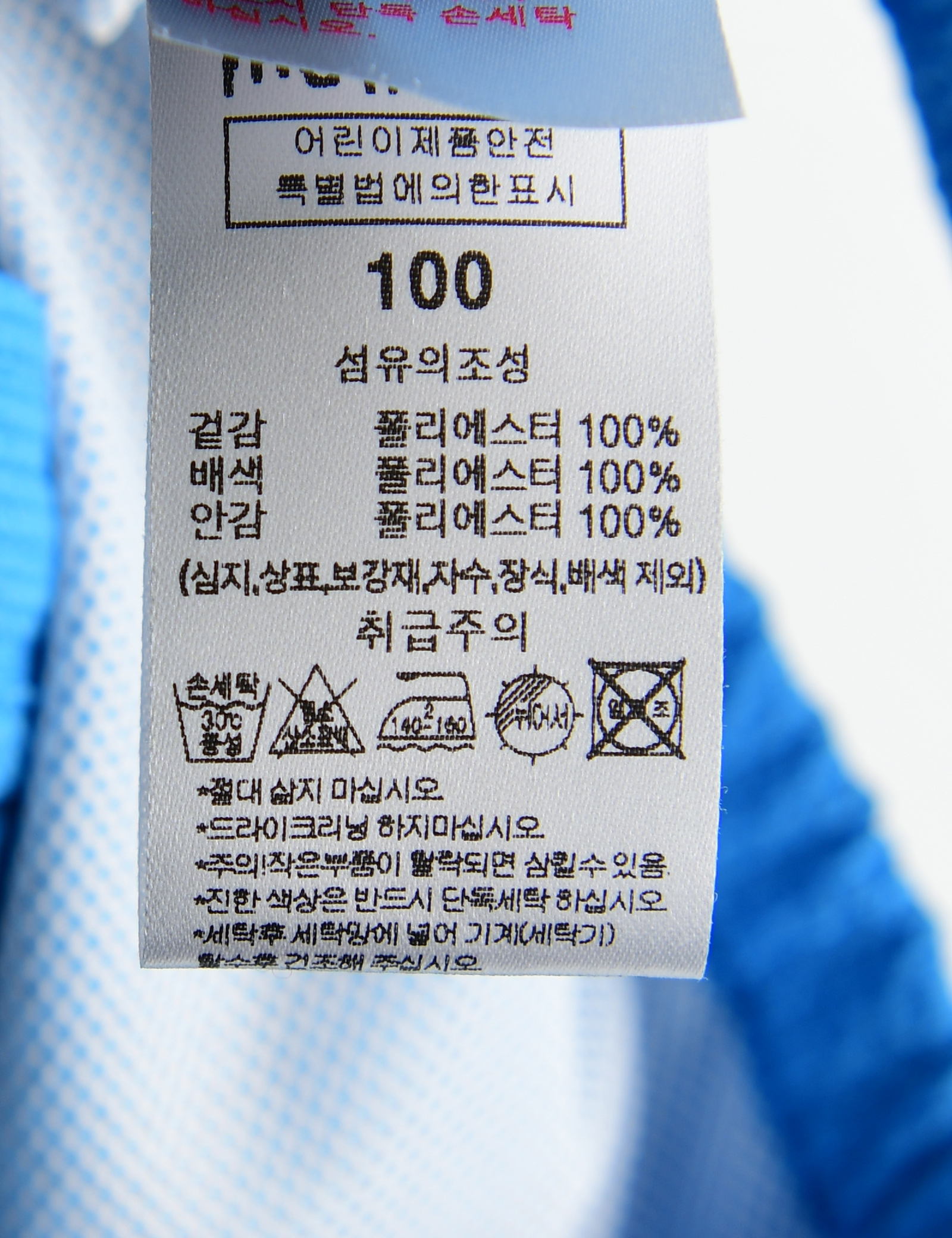 제품소재 (겉감/배색/안감)폴리에스터100%