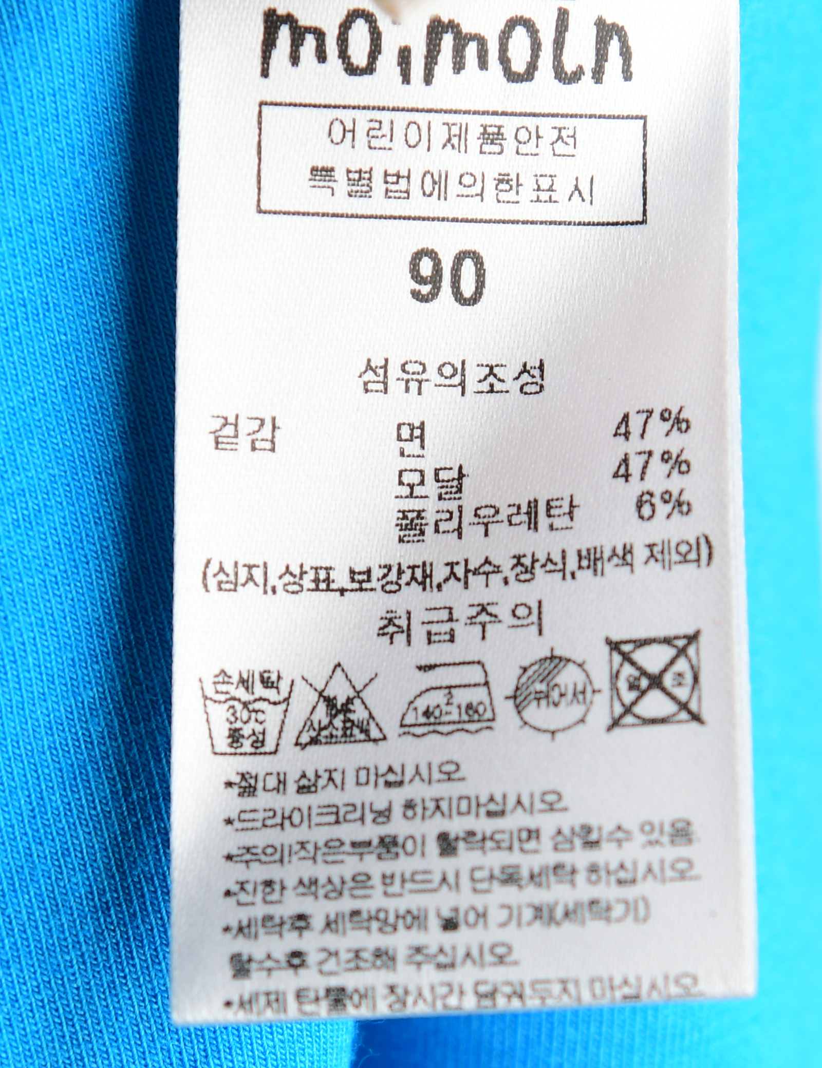 | 세탁방법 및 취급시 주의사항 | 본 세품은 손세탁 하십시오(케어라벨 참고) |