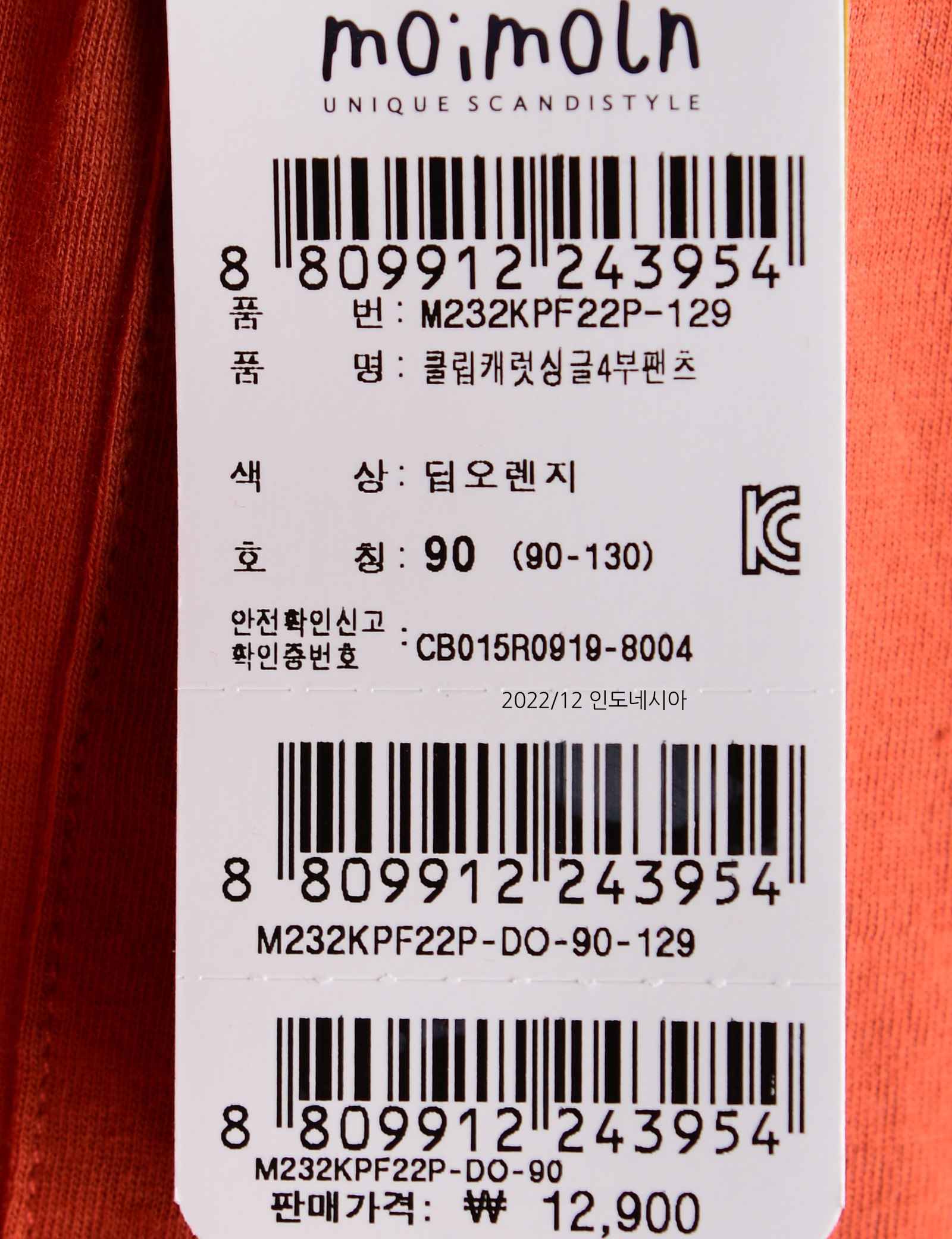 | 상품명 | [모이몰른] 클립캐럿 싱글4부팬츠 [여름] |