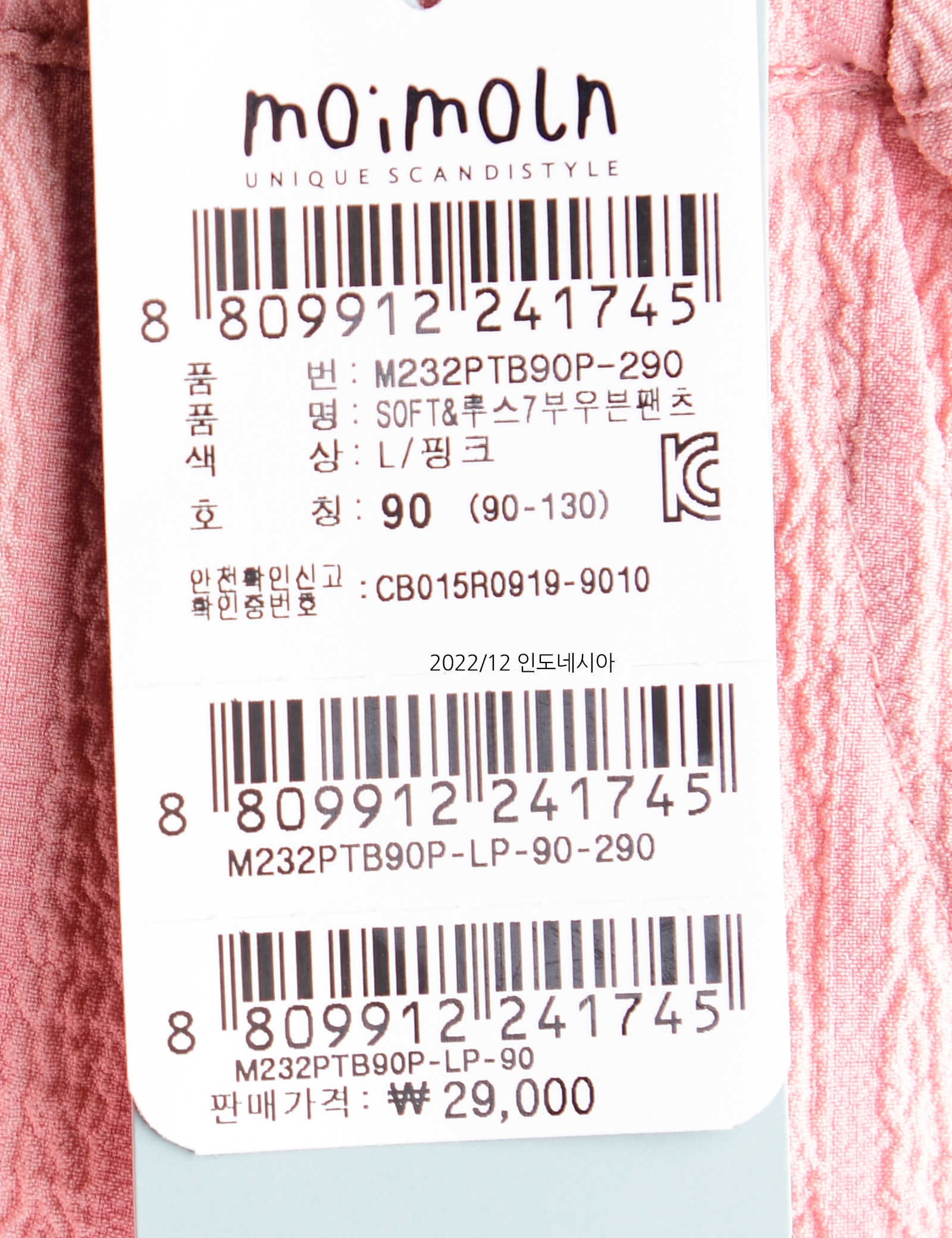 | 상품코드 | M232PTB90P |