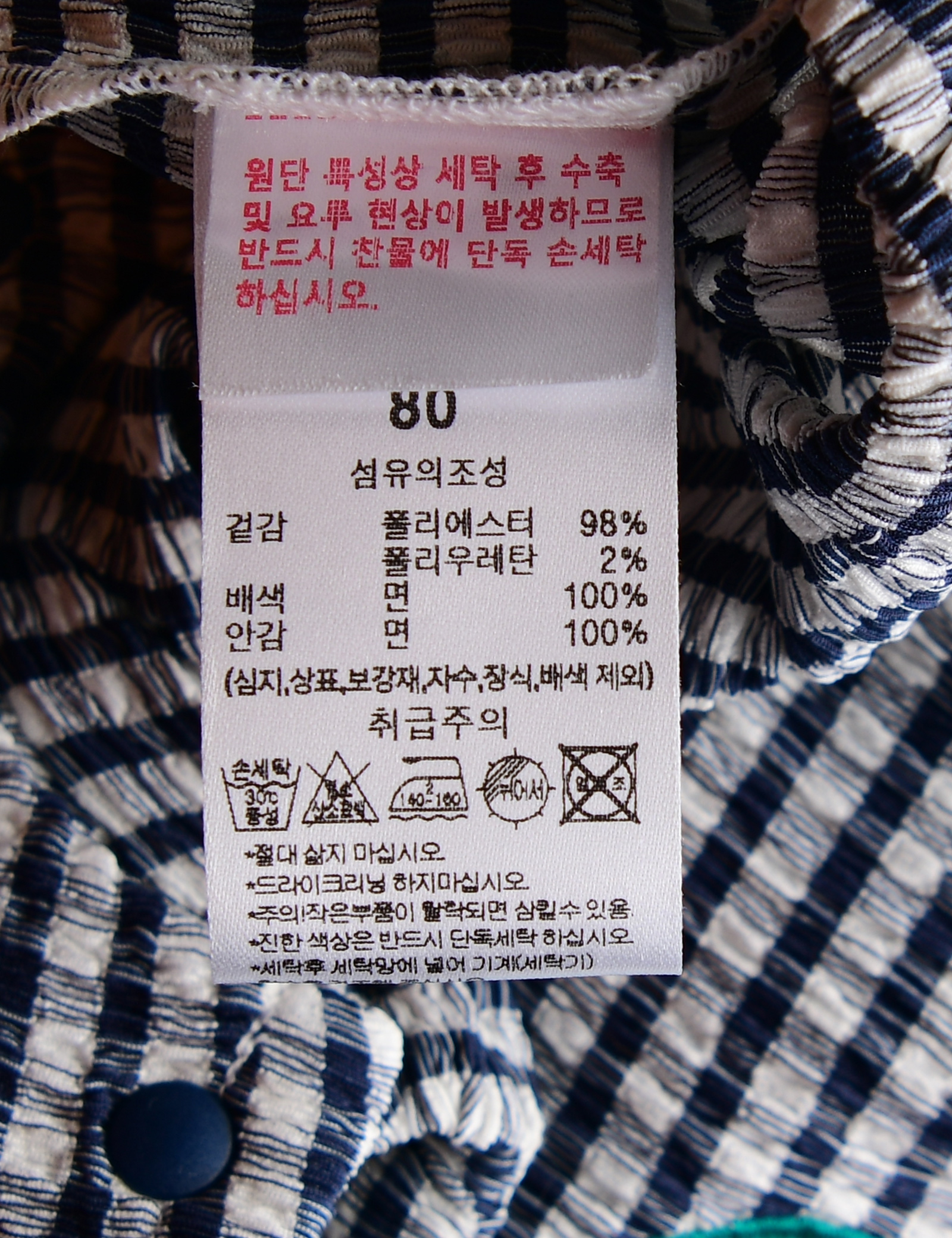 | 세탁방법 및 취급시 주의사항 | 본 세품은 손세탁 하십시오(케어라벨 참고) |