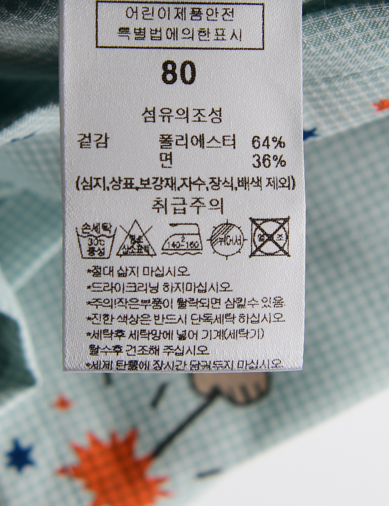 | 세탁방법 및 취급시 주의사항 | 본 세품은 손세탁 하십시오(케어라벨 참고) |