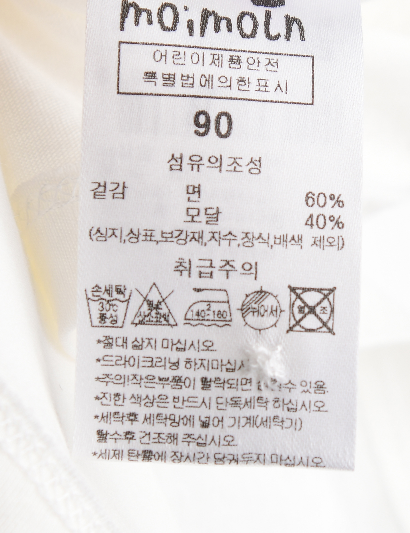 | 세탁방법 및 취급시 주의사항 | 본 세품은 손세탁 하십시오(케어라벨 참고) |